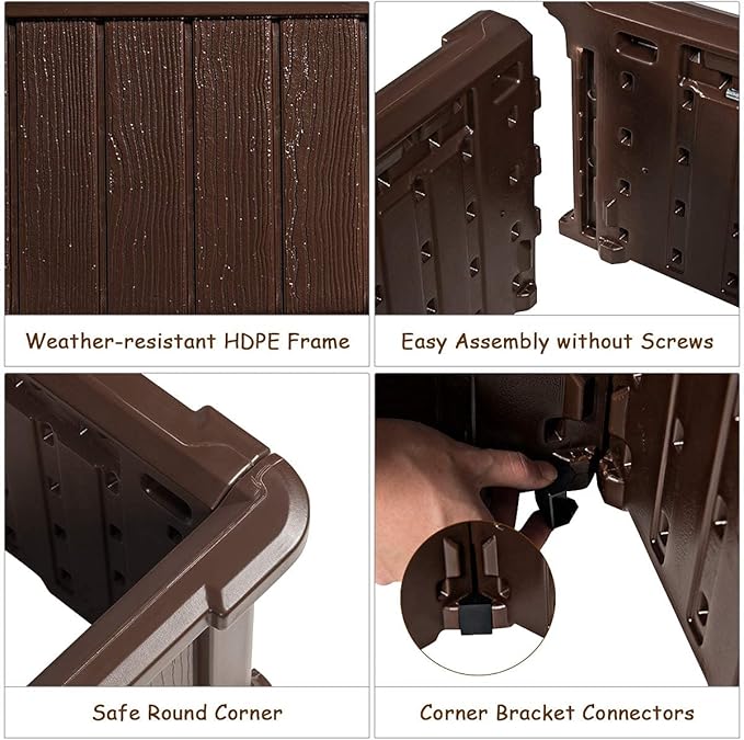 - 【Weather-Resistant Materials】: The garden box is made of HDPE, which is sturdy and durable for long time worry-free using. Most importantly, thanks to unique features of HDPE, this garden box is weather-resistant without worrying about rust. The panel of the garden box is integrally formed by a blow molding process.