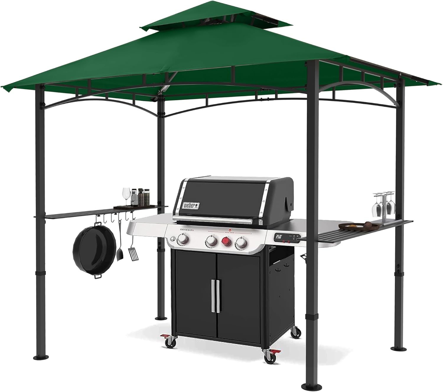 - ✅Rational Design: Two handy shelves for grill accessories, beverages and food. 8' x 5' shade provides enough space to set most kinds of grills. Great choice for BBQ.