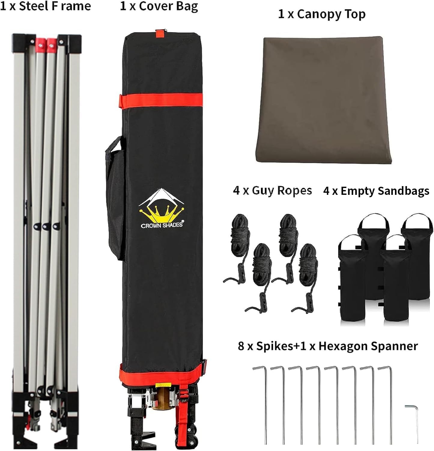 - HIGH GRADE STEEL FRAME - The durable, high-grade, corrosion-resistant steel truss frame with hardened through bolts comes pre-assembled and can be set up without any tools. Engineered to support up to 120 lbs. distributed across the frame, it ensures robust and reliable performance. The extended ceiling assembly and upgraded high peak design make it easier for rainwater to run off, preventing water pooling on the canopy. Perfect for extended outdoor use at markets, festivals, and exhibitions.