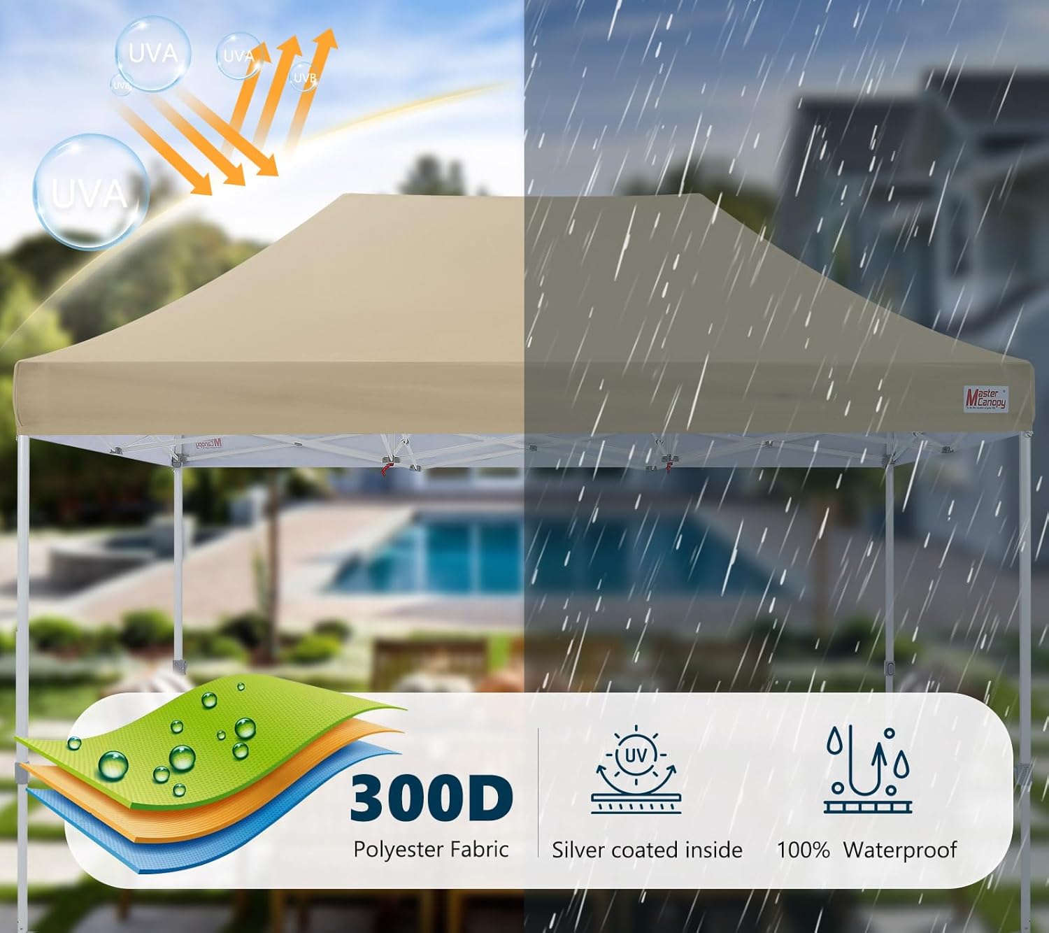 MASTERCANOPY Pop Up Canopy Tent Commercial Grade 10x15 Instant Shelter (Beige)