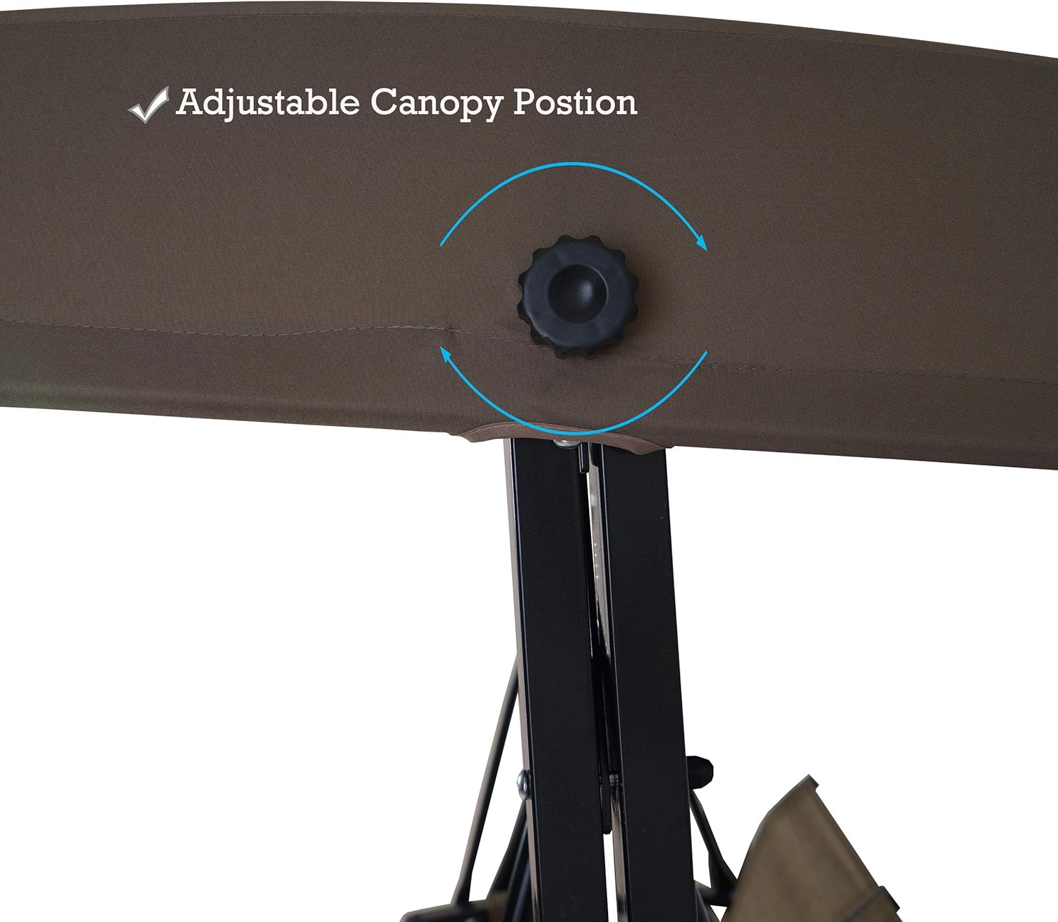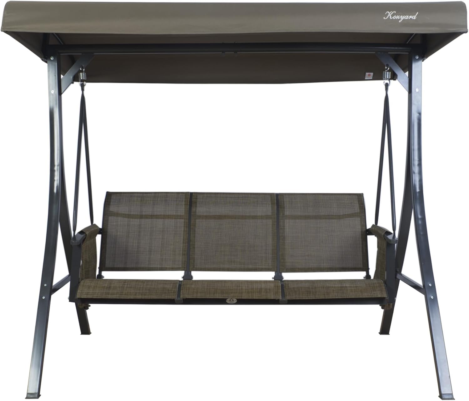Kozyard Brenda 3-Seat Patio Swing Chair, Outdoor Porch Swing Glider with Adjustable Canopy, Side Pouches, Breathable Seat and Back, for Garden, Poolside, Backyard (Taupe)
