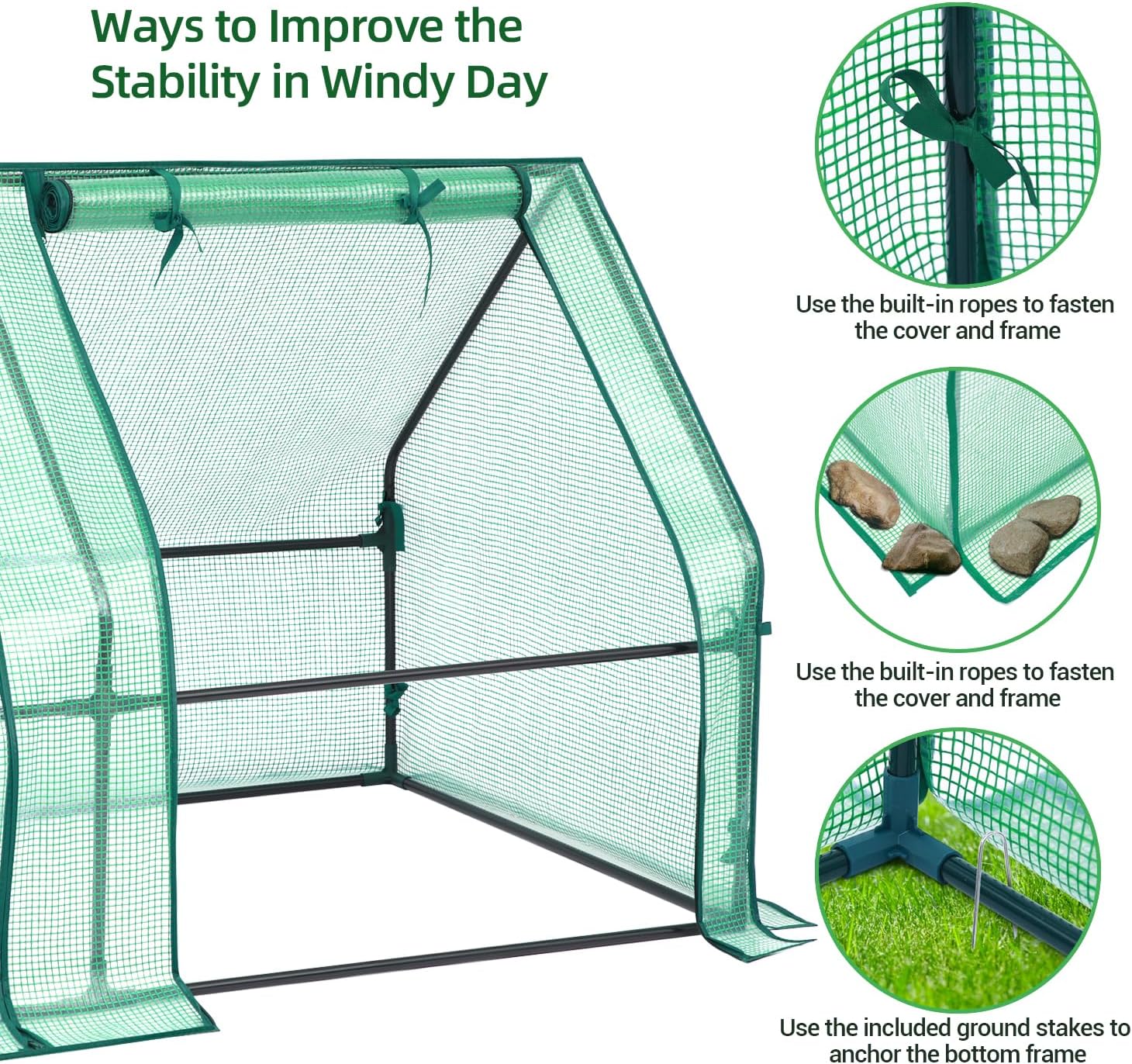 - Warm & Ventilated: 2 double zippered roll-up doors allow for easy access, making it easy to regulate external airflow to keep the plants warm and provide optimum air circulation for the plants