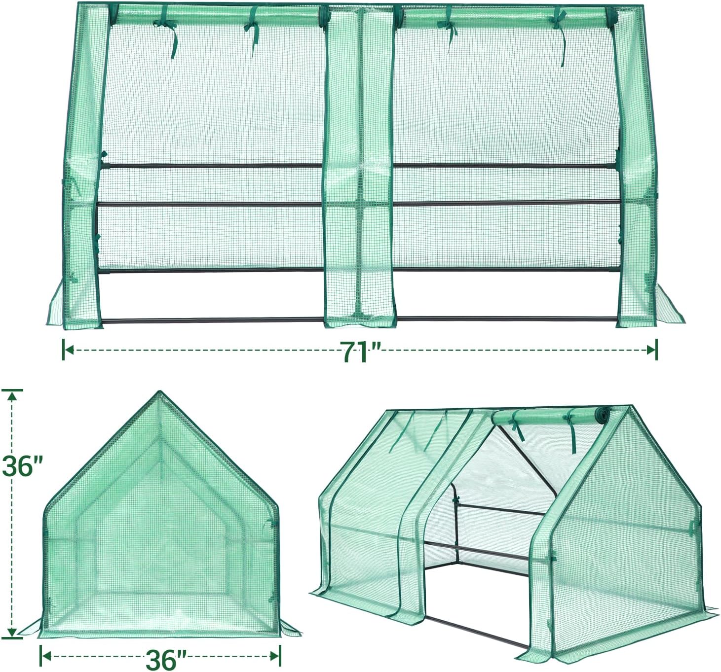 Ohuhu Portable Mini Greenhouse, 71"x36"x36" Greenhouses for Outdoors with Dual Large Zipper Doors & Ground Stakes, Waterproof & UV Protected Plastic Green House for Outside Garden Patio Backyard