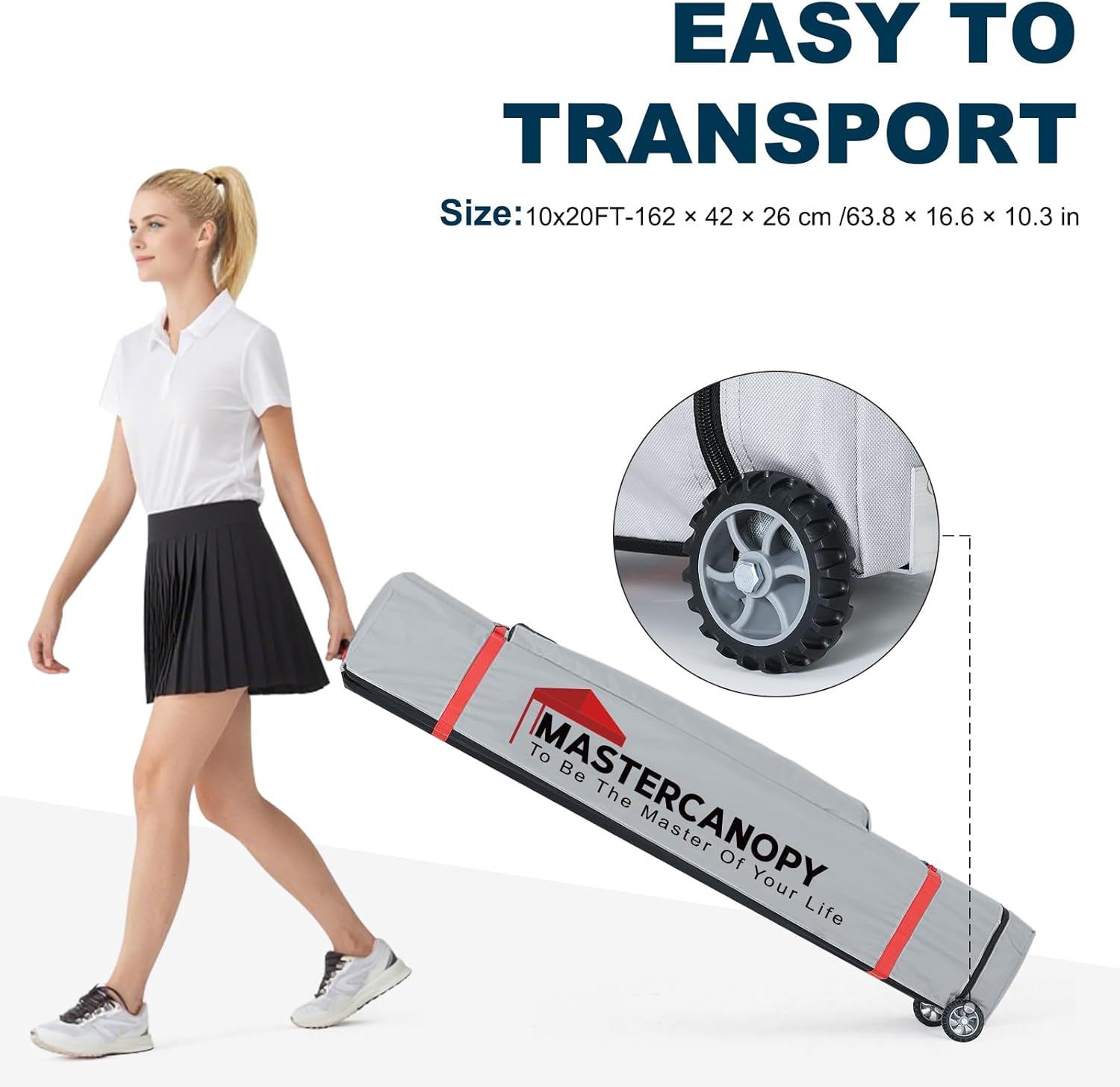 - ✅Large Space: 10 x 20 Pop Up Canopy with straight legs provides a true 200 square feet shade. Big enough for about 6-10 people to sit under it. Center height is 132 inch. Suitable for market stalls, parties, picnics or any outdoor events. MASTERCANOPY commercial canopy tent is suitable for both sunny and rainy days.