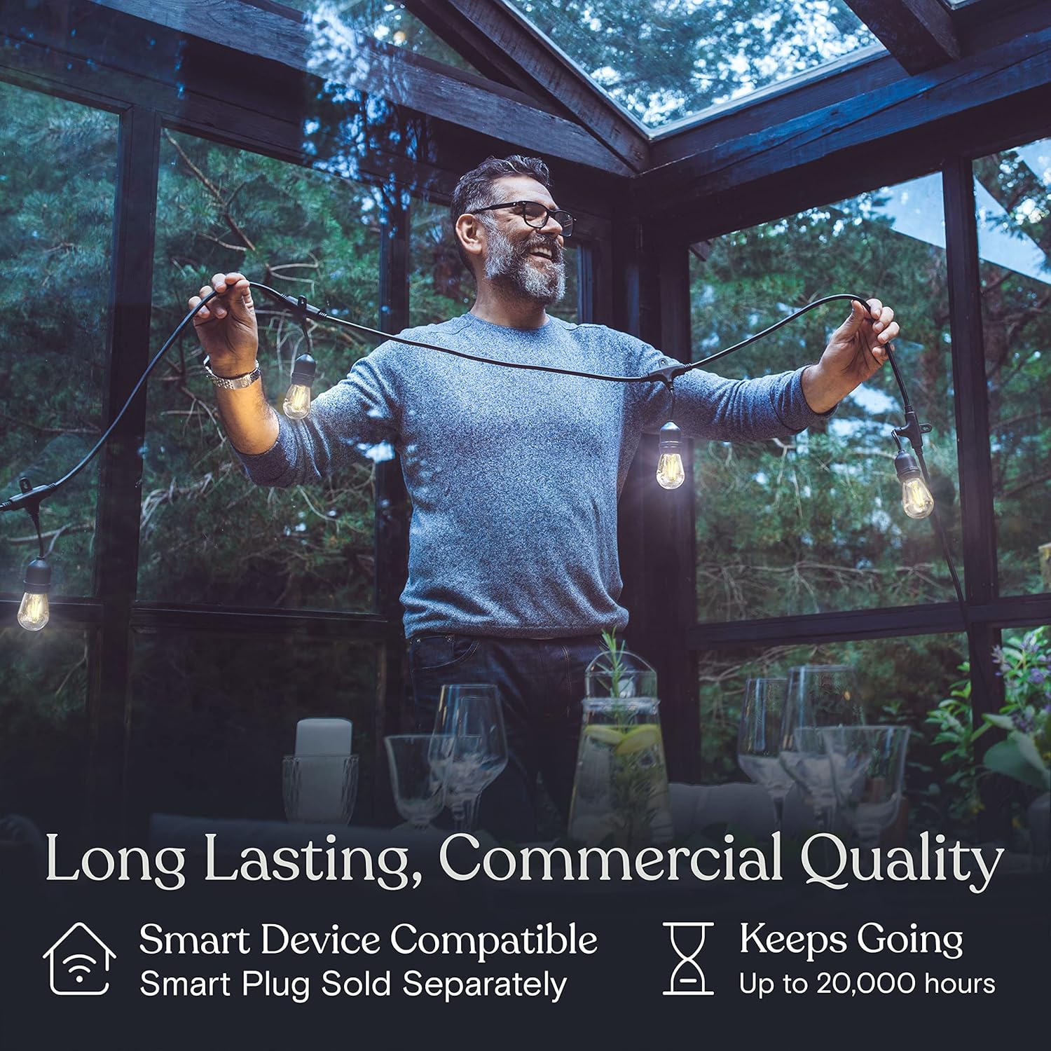 - Classic Cafe Ambience: Brightech indoor outdoor string lights use vintage Edison Bulbs. Install this hanging lights string with old-fashioned filaments to give off a warm, old-time glow so that you can come home after a busy day and enjoy your very own retreat. Make your pergola, porch or other space to be an enticing, relaxing and soothing retreat with Brightech LED outdoor lights.