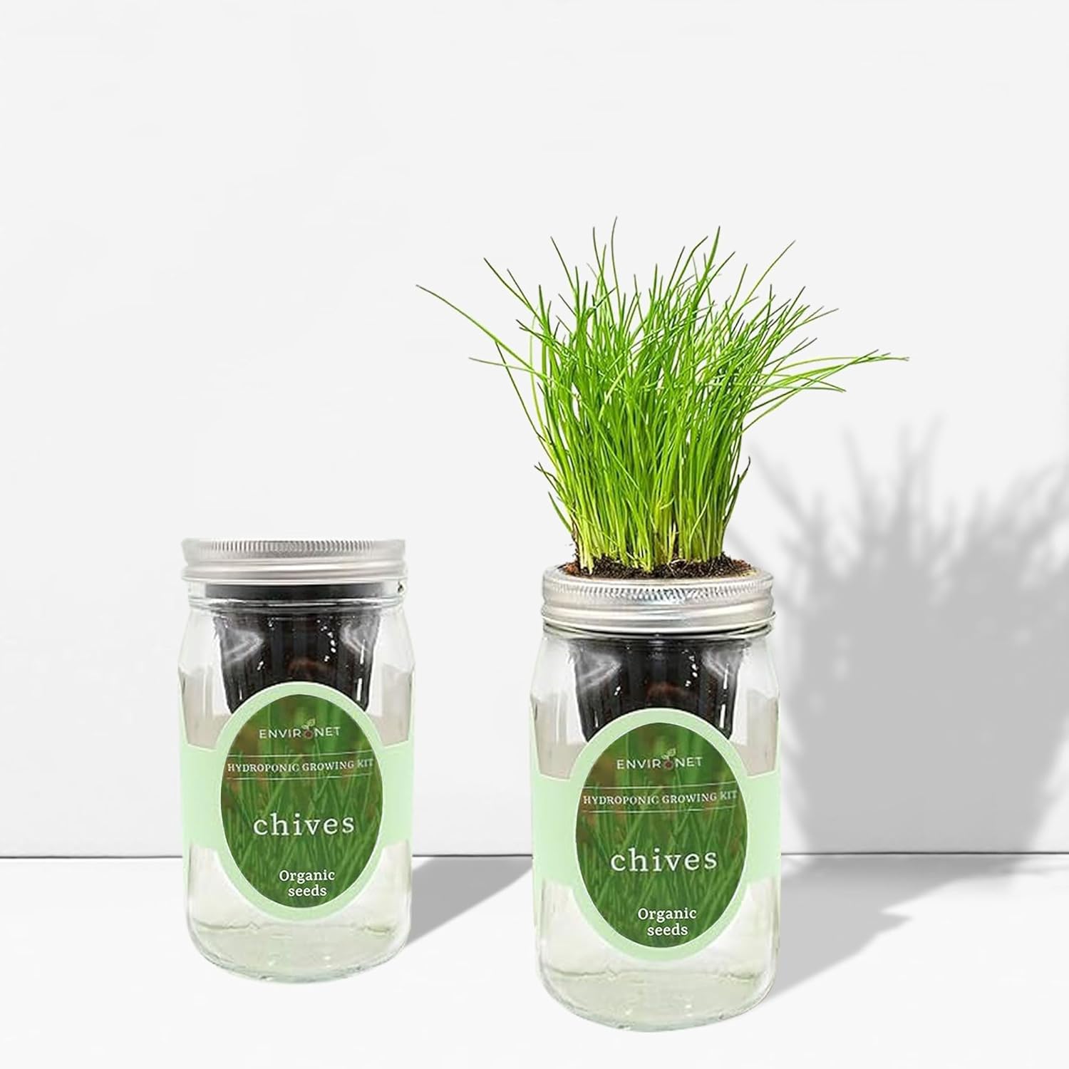 Hydroponic Herb Growing Kit, Self-Watering Mason Jar Herb Garden Starter Kit Indoor, Grow Your Own Herbs from Organic Seeds (Chives)