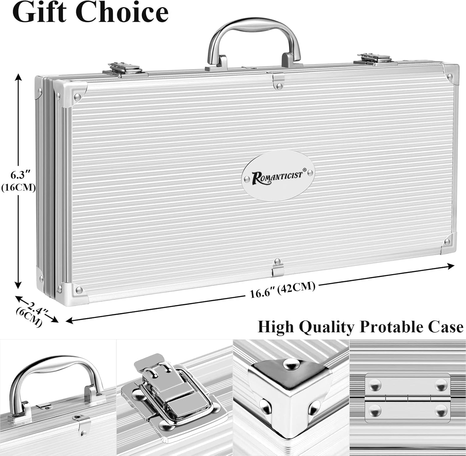 ROMANTICIST 25pcs Extra Thick BBQ Grill Accessories, Fathers Day Grilling Gifts Set for Men Dad, Heavy Duty Grill Tools Utensils Kit with Spatula, Tongs in Aluminum Case for Birthday Brown