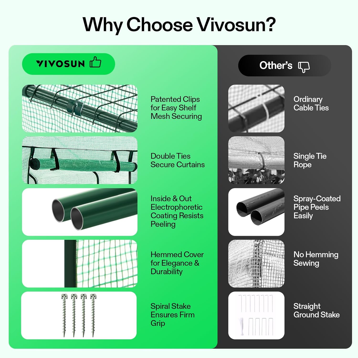- Metal Structural Bars: This Green House is incredibly robust and firmly supported by powder-coated heavy steel frames
