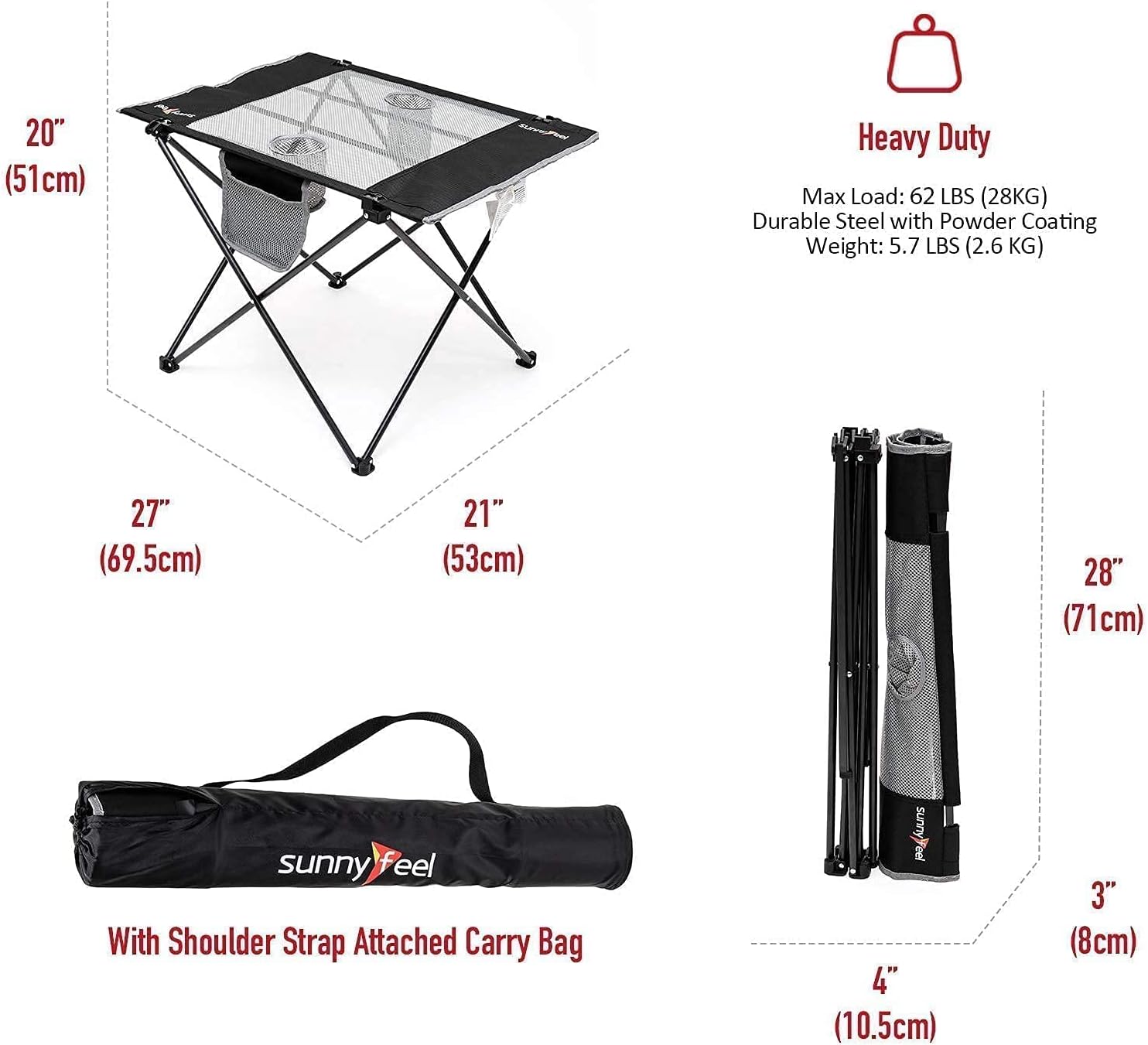 SUNNYFEEL Outdoor Folding Table | Lightweight Mesh Compact Camping Table, Roll Up Top 2 People Portable Camp Tables with Carry Bag for Picnic/Cooking/Beach/Travel/BBQ