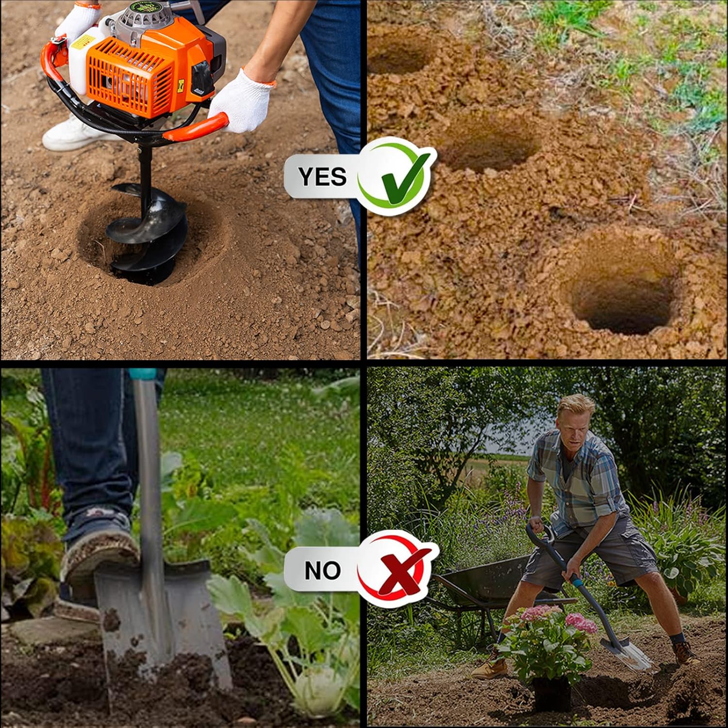 - 【Specifications】The auger drill bit for planting has a 0.79 inch(2.0cm) inner diameter shaft that fits most common auger powerheads, not recommended for hand power drills due to its larger size, compatible with post hole auger gas powered.