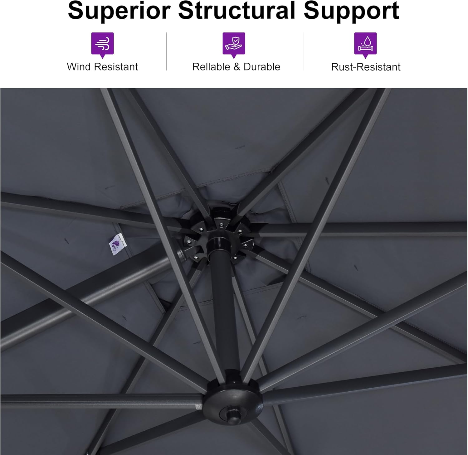 PURPLE LEAF 9 Feet Patio Umbrella Outdoor Cantilever Square Umbrella Aluminum Offset Umbrella with 360-degree Rotation for Garden Deck Pool Patio, Grey