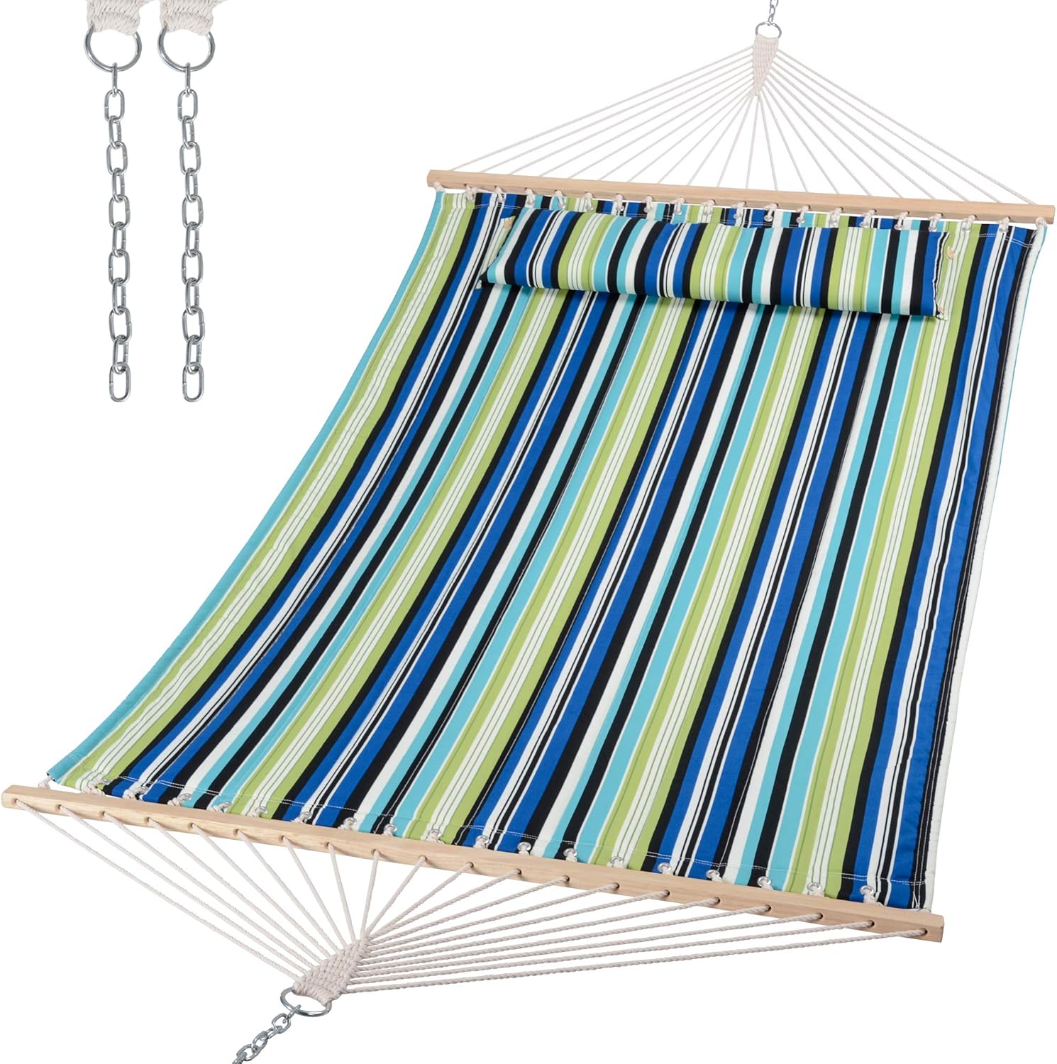 - Two Person Hammock: The hammock bed's dimension is 78.7" L * 55.1" W, the length from ring to ring is 122", larger than other quilted hammocks; The heavy duty hammock is made for sharing. Designed to support up to 475 lbs, you can enjoy a relaxing swing on the hammock with your family, friends, and significant others