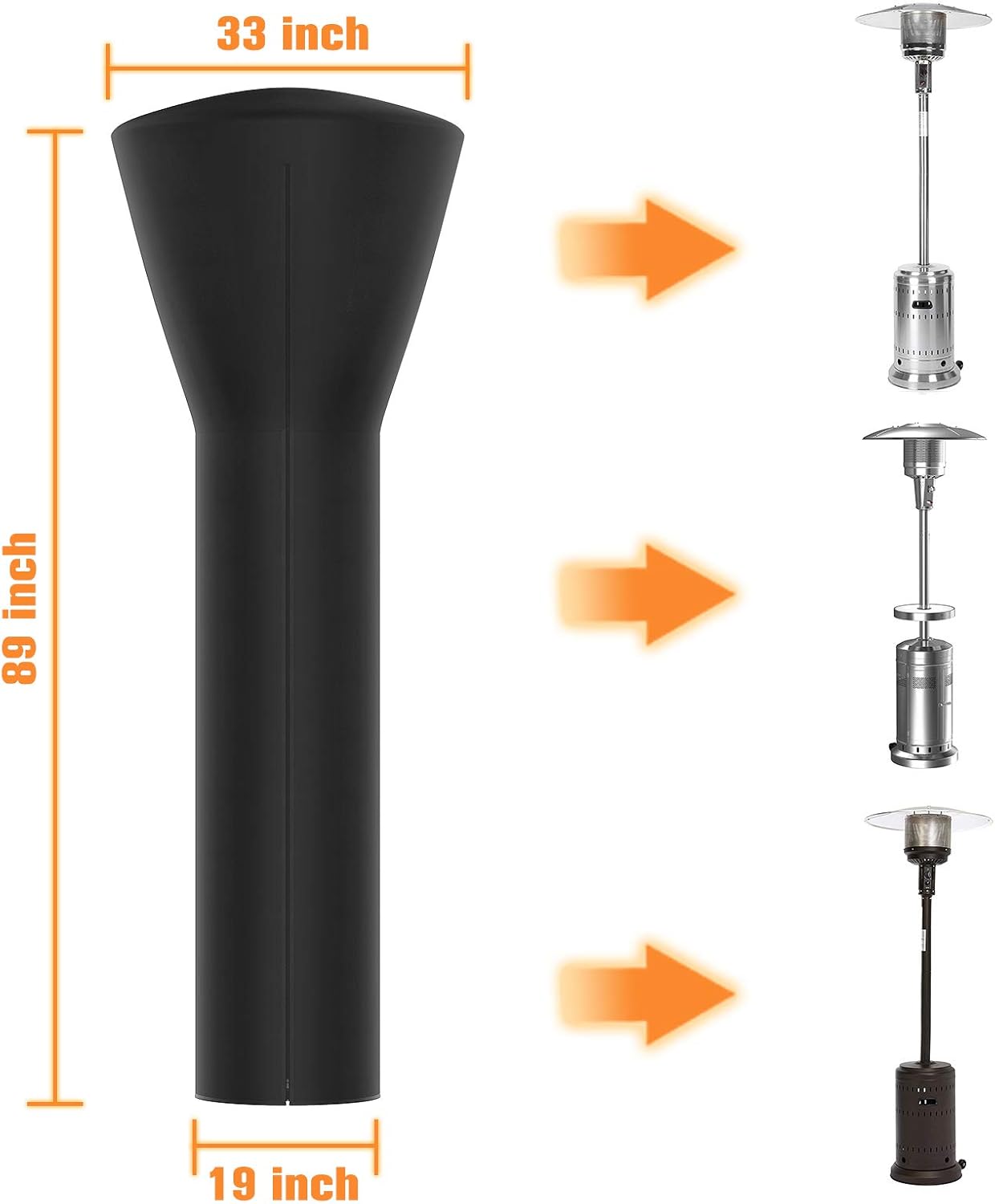 - ☔UNIVERSAL SIZE Patio heater cover H89xD33x19in (226*85*48cm),universal design fits most patio heaters. Please measure your patio heater before purchasing.