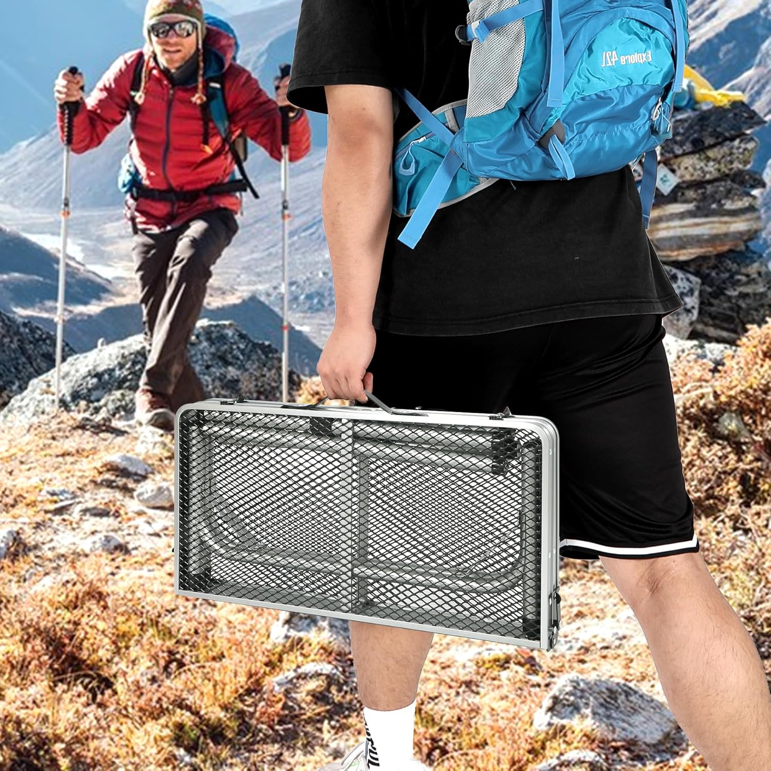 - Multifunction: Finished with premium aluminum alloy frame and thick iron mesh table top, these rectangular and square metal outdoor grill tables for camping are sturdy and stable enough. Water and heat resistant wire desktop can support your oven, grill stand, or other bbq equipment.