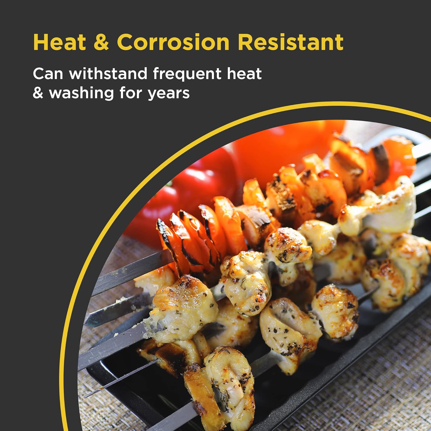 - STAINLESS STEEL BBQ SKEWERS FOR DURABILITY: O-Yaki’s metal skewers are made from durable stainless steel, ensuring they are resistant to rust and can withstand repeated use. These sturdy BBQ skewers won’t bend or break, providing a consistent grilling experience for meats, veggies, seafood, and more.