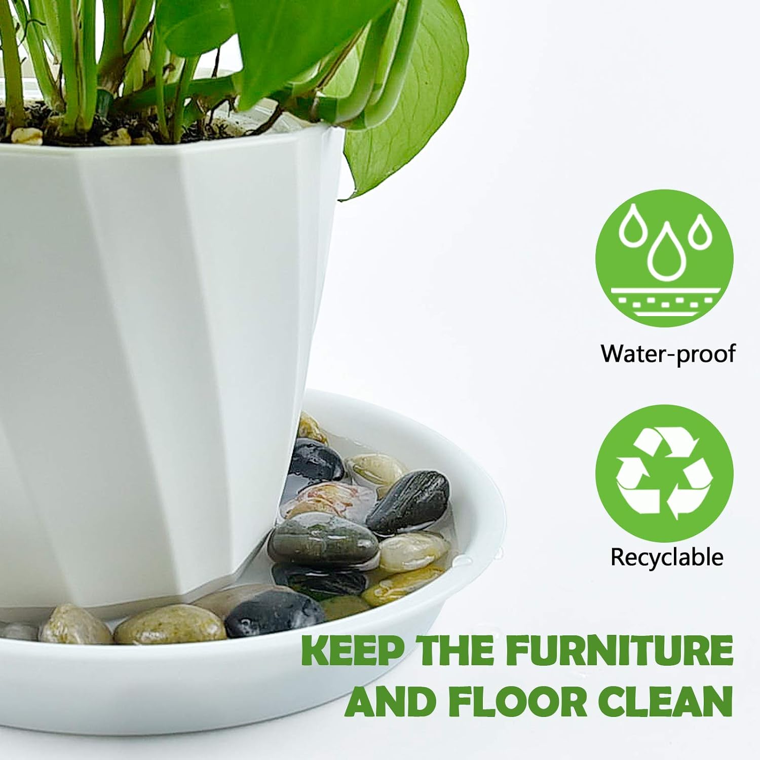 - 【Optimal Drainage System】:Many flower pots do not have plant pots. These planter saucers will help you get water from your planter drainage holes. You can decorate the planter drip tray with colorful pebbles without having to worry about too much water or soil overflowing and contaminating the floor! Keep your garden clean.