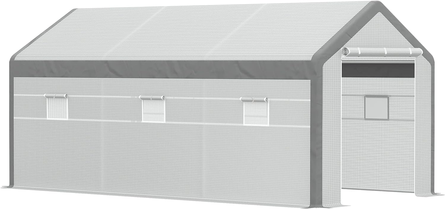 Outsunny 20' x 10' x 9' Walk-in Greenhouse, Outdoor Garden Warm Hot House with 6 Roll-up Windows, 2 Zippered Doors and Weather Cover, White