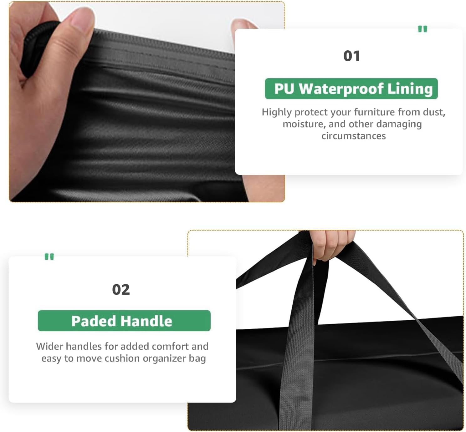 - 【Waterproof & Durable】- This extra large storage bag is made of 420D hign quality durable oxford fabric that has great waterproof, dustproof and UV resistant performance. So put your patio cushion into the outdoor cushion storage bag to protect your patio cushion from heavy dust, rain, snow, sunshine.