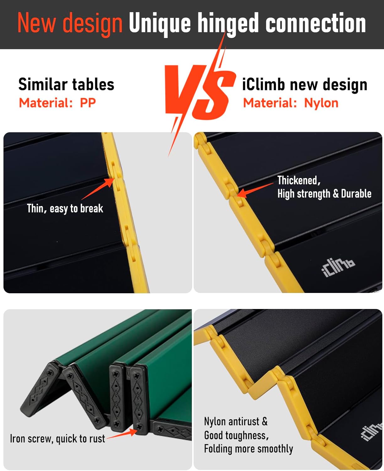 - Ultralight, made of aerospace-grade aluminum alloy, only 3 lbs; Max Load 66 lbs; Unlike wooden or nylon-top tables, this table is durable, waterproof, corrosion-resistant, easy to clean; Sturdy joints and anti-slip feet keep the table stable, with legs that won’t fold, bend, or slip on any terrain; Very easy to set up, just open the base frame and attach the tabletop, enjoy your leisure time in seconds, video guide available on this page.