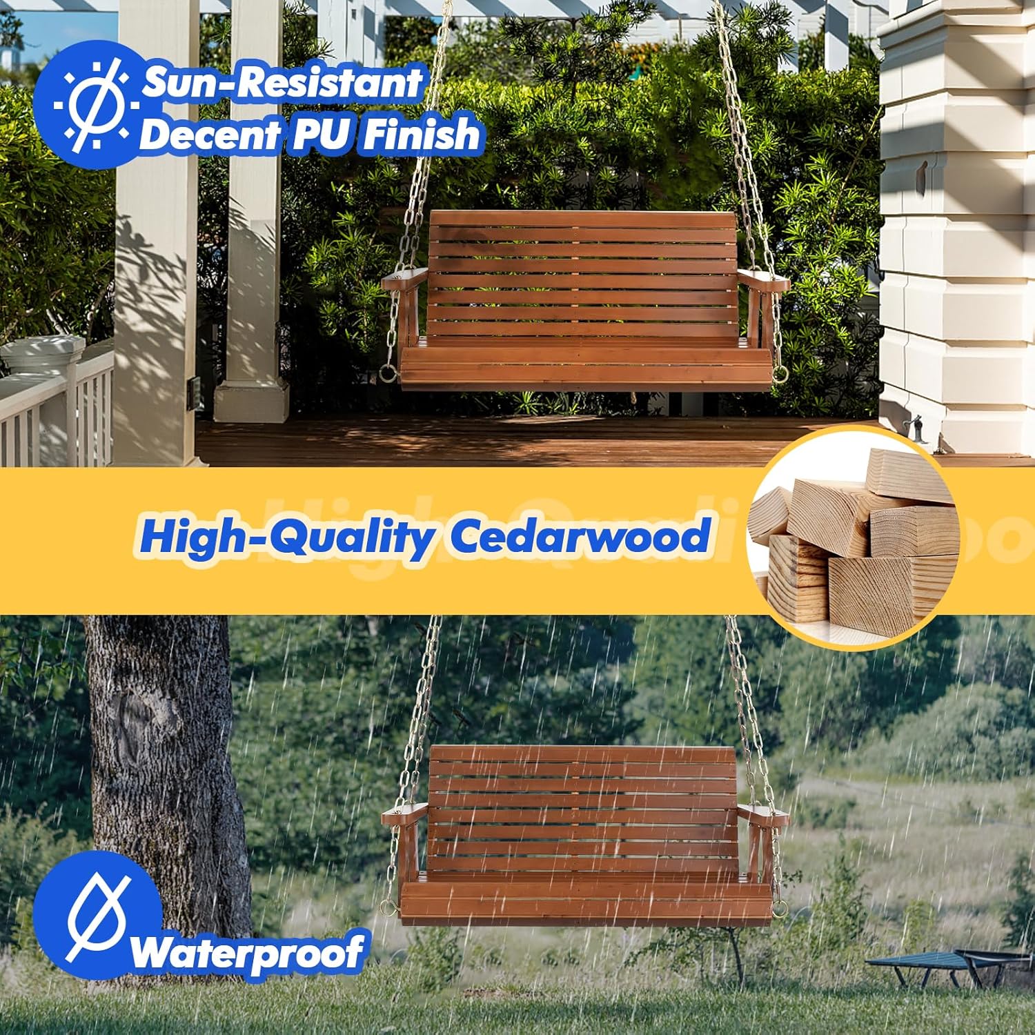 - Well-Coated Surface - Compared with other swings with raw wood material, our porch swing chair outdoor are more durable with its well-finished surface