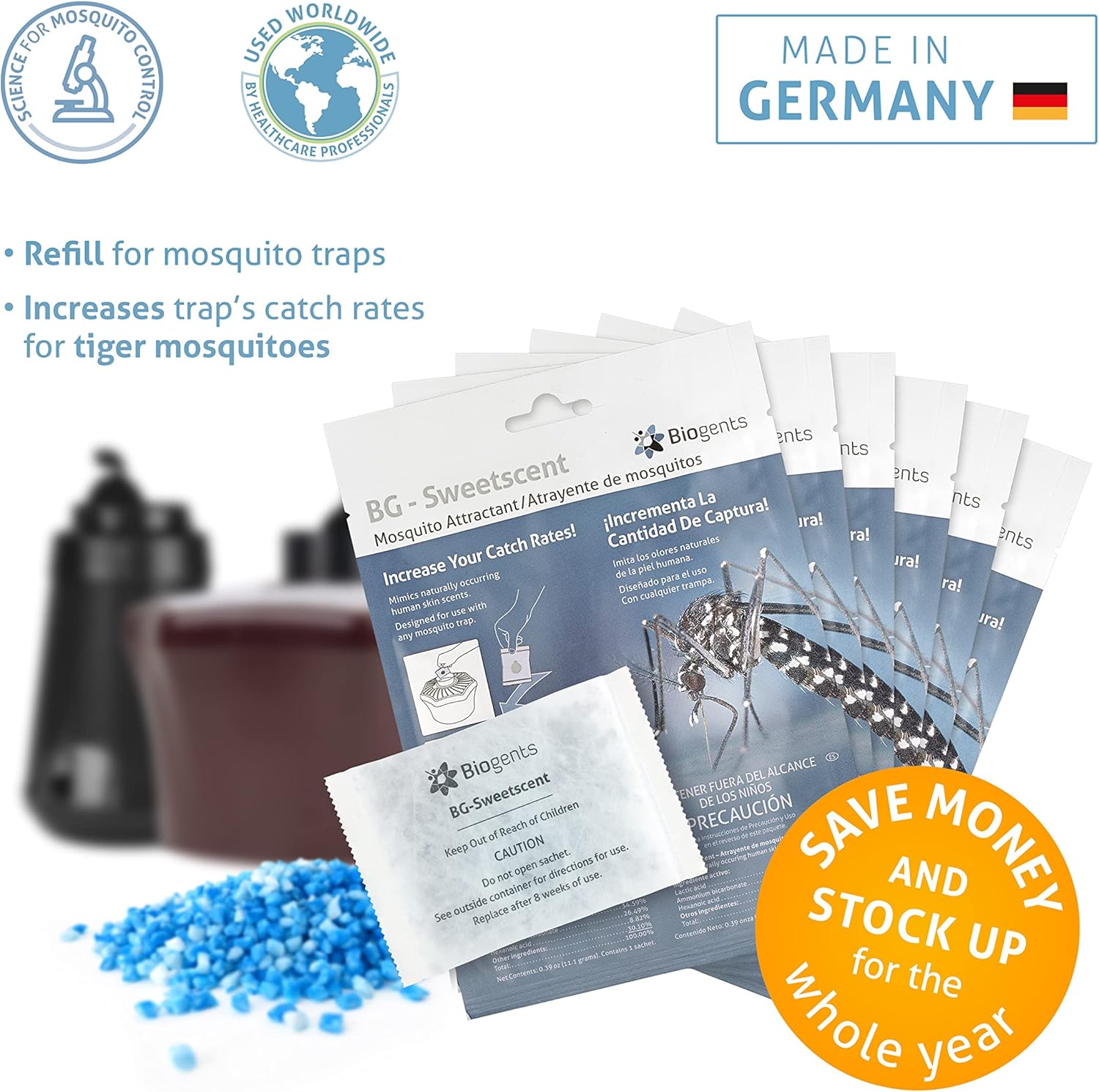Biogents Sweetscent • Mosquito Attractant • Mosquito Lure • Mosquito Magnet • Compatible with All Mosquito Traps - Year Round Protection - Set of 6