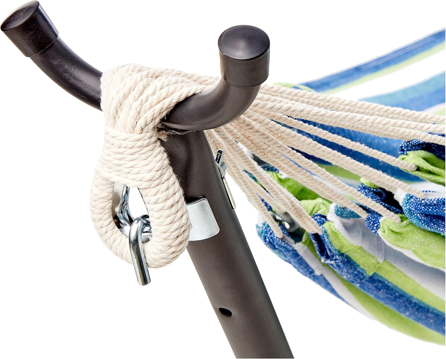 Amazon Basics Double Hammock with 9-Foot Space Saving Steel Stand and Carrying Case, 450 lb Capacity, Oasis Stripe, 110 x 47 x 43 inches