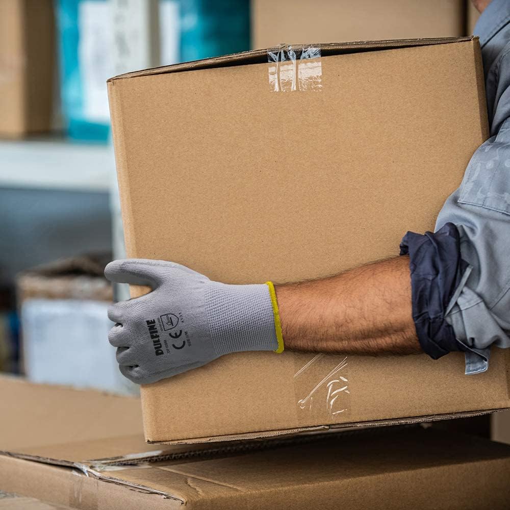 DULFINE Safety Work Gloves PU Coated-12 Pairs,Grey Seamless Knit Glove with Polyurethane Coated Smooth Grip on Palm & Fingers, for Men and Women, Ideal for General Duty Work (Small)