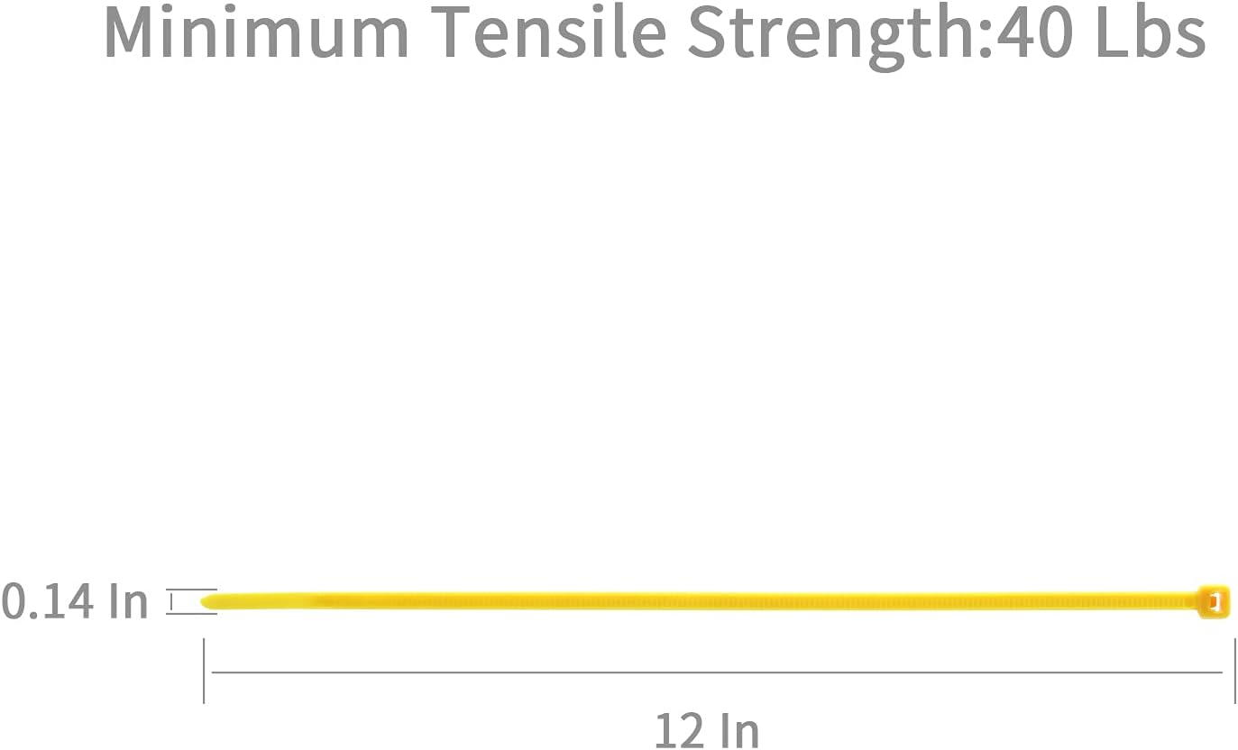 XINGO Nylon Cable Zip Ties Self Locking Plastic Wire Ties with 40 Lbs Tensile Strength for Indoor and Outdoor 12 Inch 500 Pack Yellow