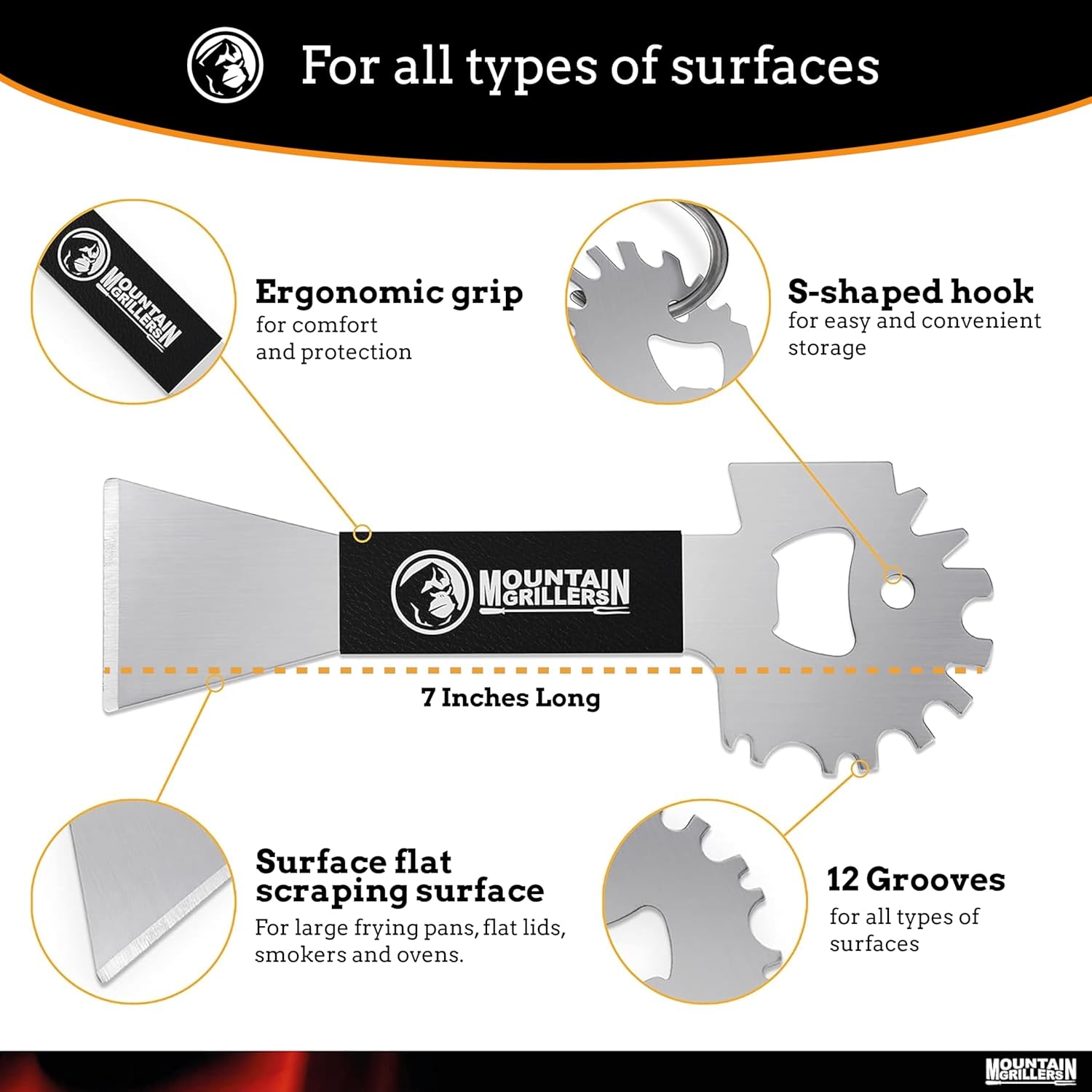 - Bristle-Free Cleaning Power: Say goodbye to wire grill brushes. Our bristle-free Mountain Grillers BBQ grill scraper for outdoor grill effectively cleans grates without any hazards.