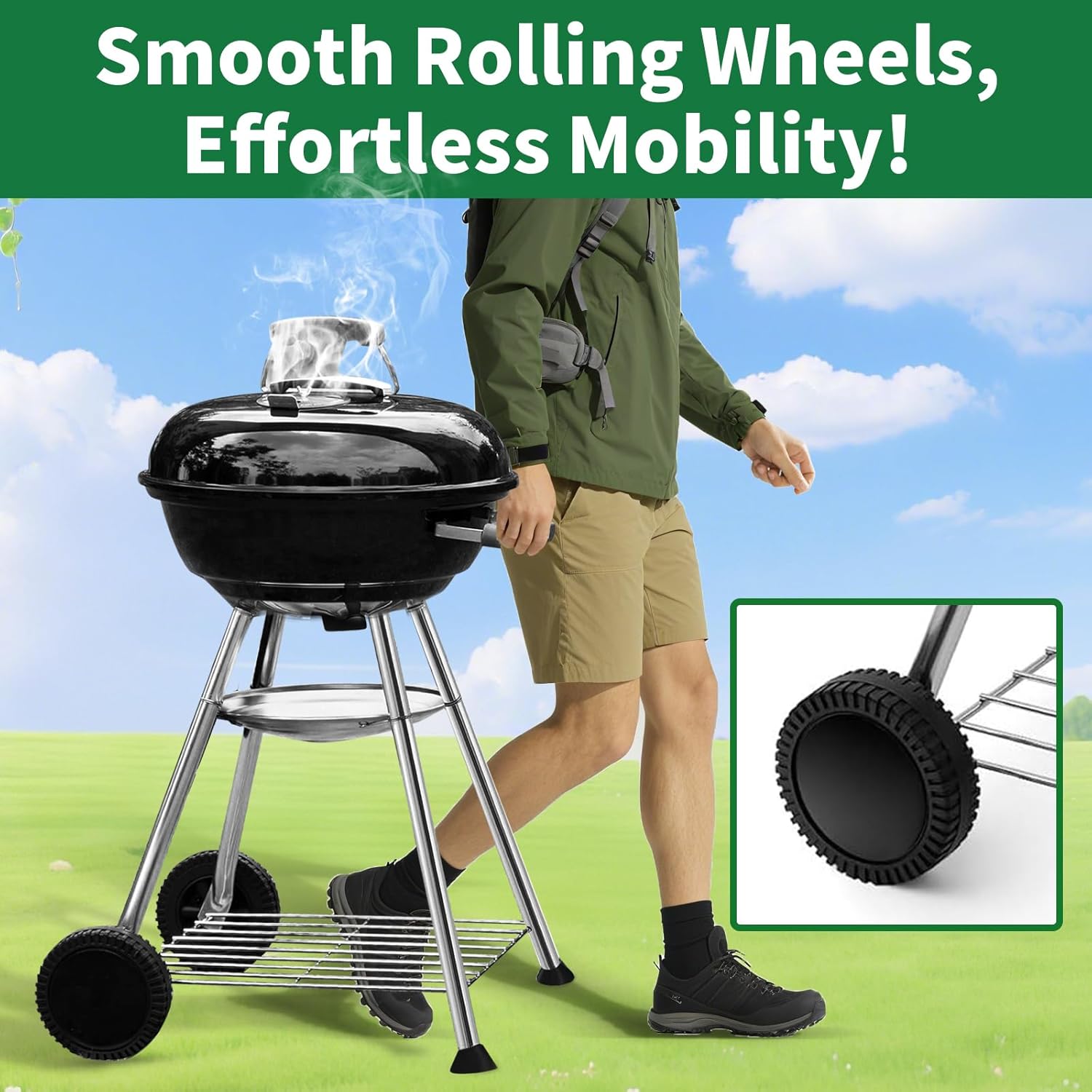 BEAU JARDIN Charcoal Grill 18 Inch for Outdoor Cooking BBQ Barbecue Coal Kettle Bowl Grill Portable Heavy Duty Round with Wheels Grilling for Tailgating Patio Backyard Camping Black BG4691