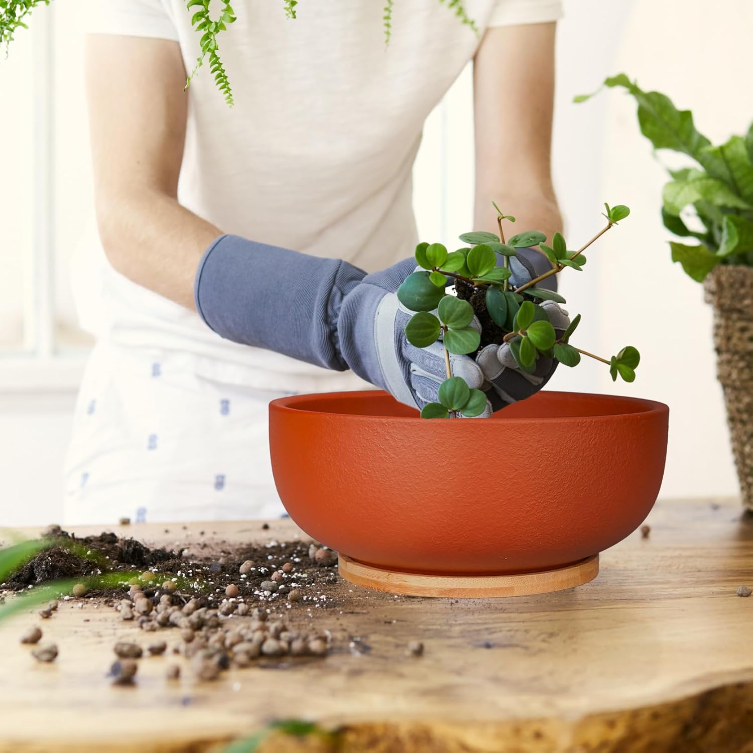 SQOWL 10 Inch Large Terracotta Planter Pot,Clay Succulent Bonsai Planter with Drainage Hole and Bamboo Saucer for Indoor Plants