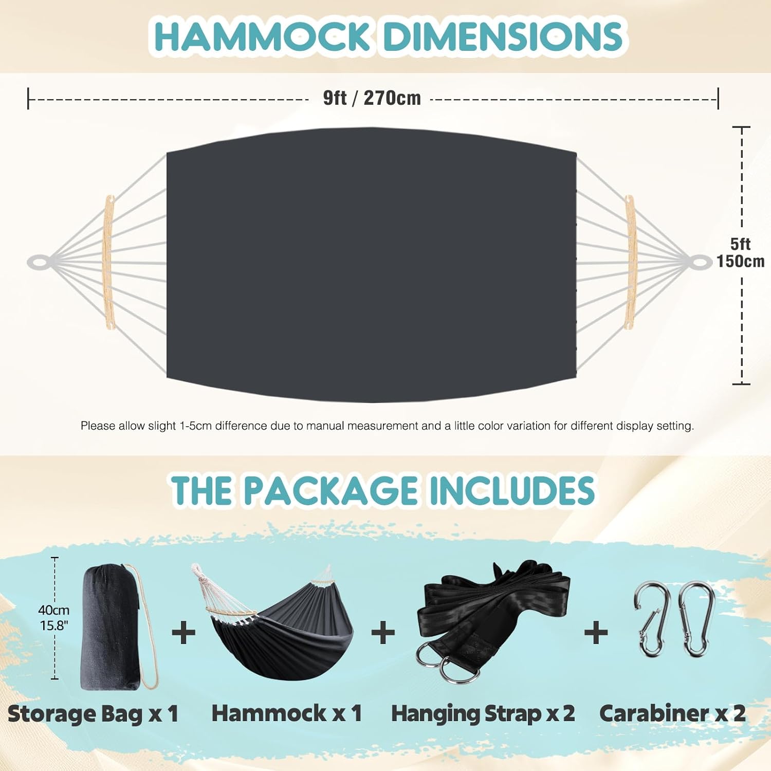 Anyoo Garden Cotton Hammock Comfortable Fabric Hammock with Spreader Bar Sturdy Hammocks Up to 450lbs Portable Lightweight Hammocks with Travel Bag for Camping Outdoor/Indoor Patio Backyard