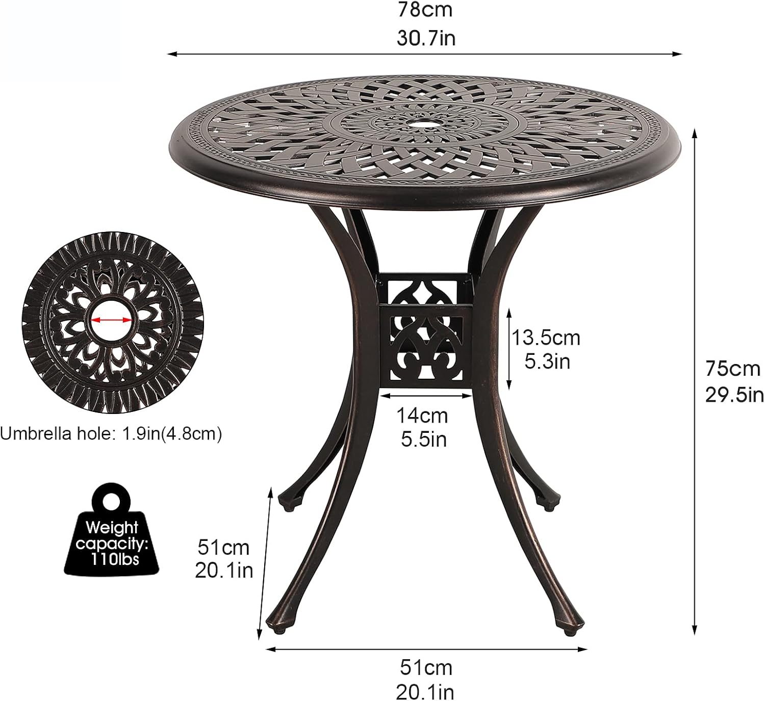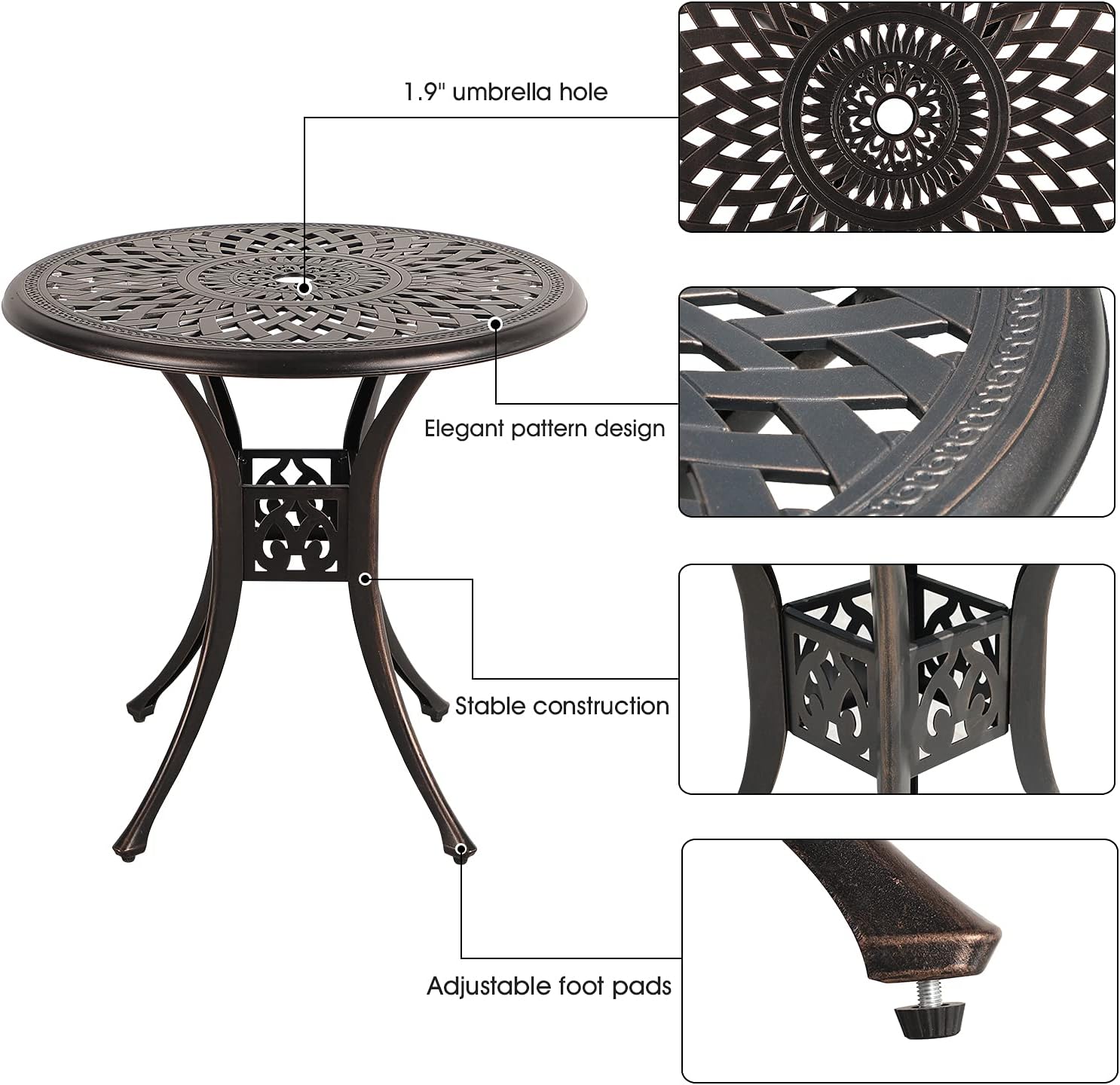 COBANA Patio Bistro Table, 31’’ Round Cast Aluminum Outdoor Dining Retro Side Table with 2’’ Umbrella Hole, Bronze