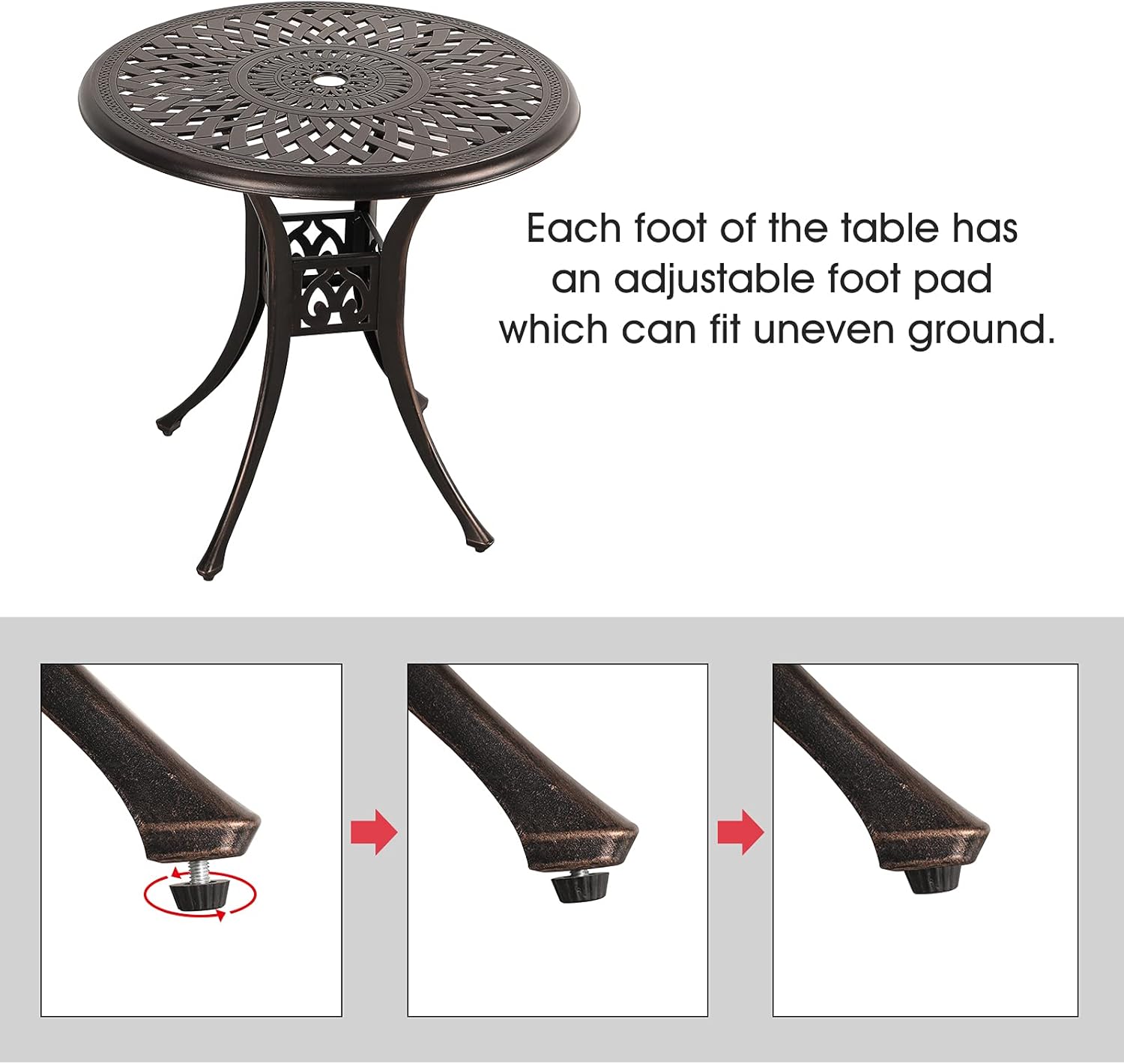 - 【Thoughtful Design】COBANA bistro table is light enough to move anywhere, you can attach a patio umbrella in the center hole, it can also fit uneven ground by featuring adjustable levelers