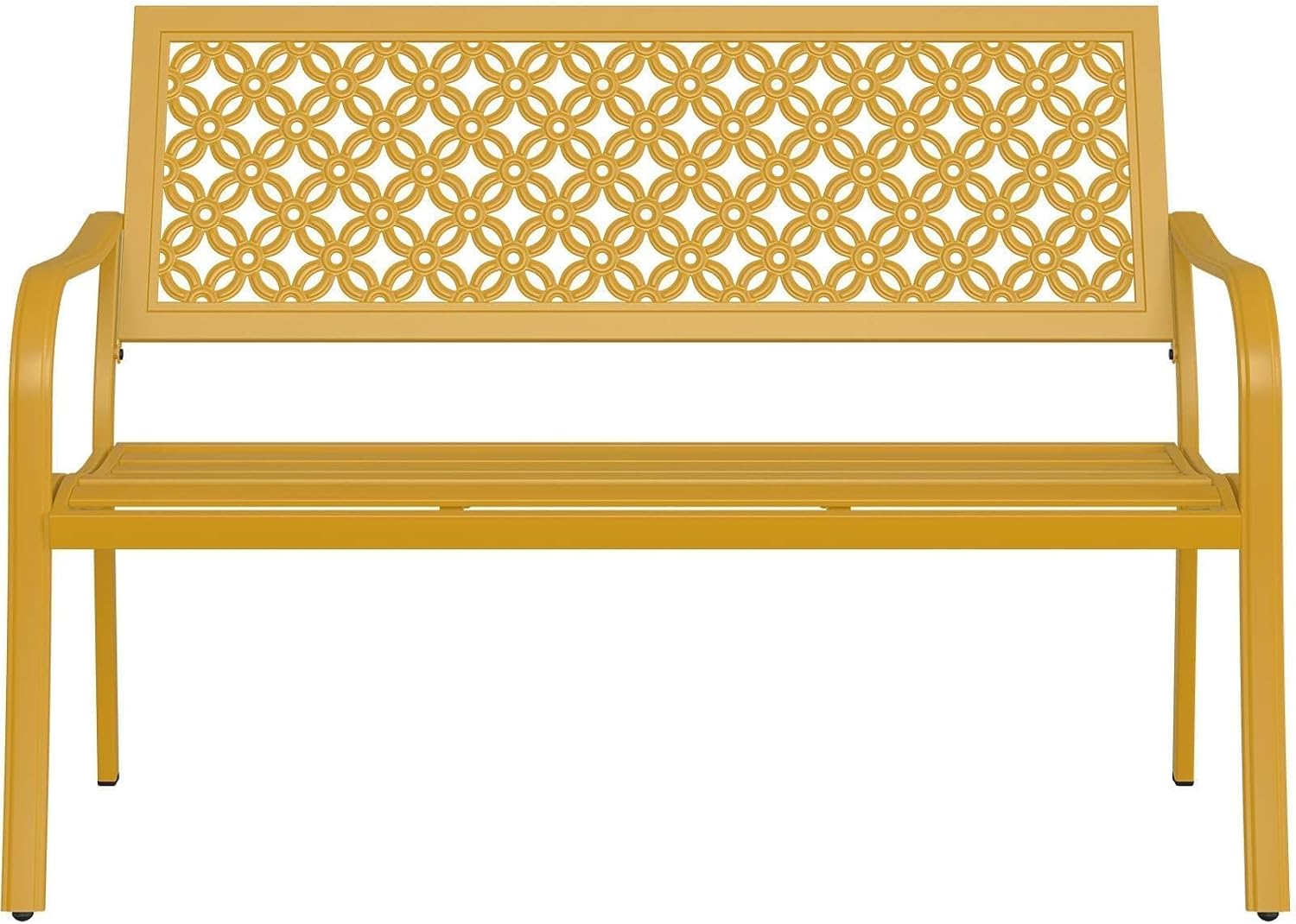 Grand patio 50" Outdoor Bench, Garden Benches with Anti-Rust Metal Powder Coated Frame, Patio Bench for Front Porch Park Outside Furniture Decor, Sunflower Yellow