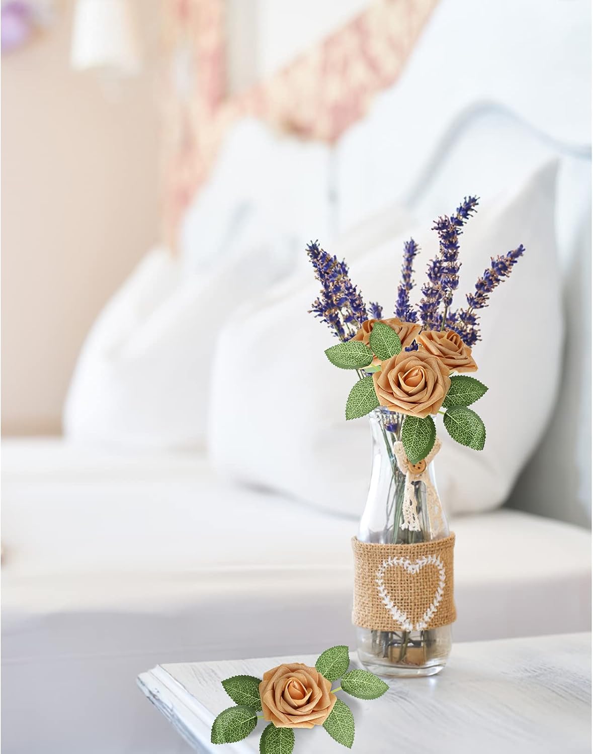 AmyHomie Artificial Flower Gold Rose 25pcs Real Looking Fake Roses w/Stem for DIY Wedding Bouquets Centerpieces Arrangements Party Baby Shower Home Decorations