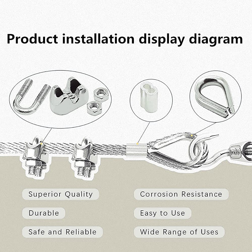 - 【304 Stainless Steel Material】: The 1/16 wire rope kit is made of stainless steel 304, our string light hanging kit boasts exceptional corrosion resistance, durability and bearing capacity, perfect for indoor and outdoor multi-purpose use.; the smooth surface of the vinyl coating provides a smooth and insulated surface, preventing rust and providing a longer lifespan 。
