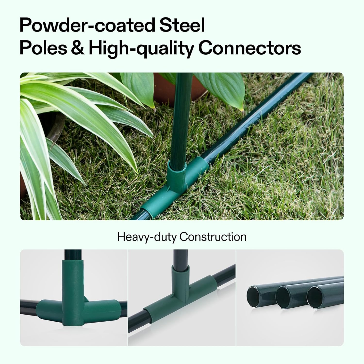 - Solid Frame: Built with heavy-duty powder-coated steel.Equipped with reliable PP connectors that are sturdy enough to resist harsh weather