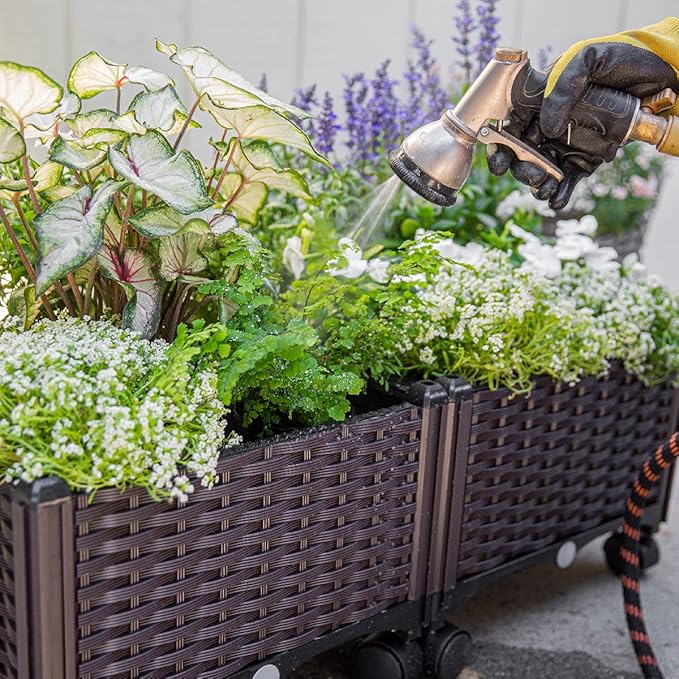 Barton 2 Pieces Rolling Garden Bed Brown Plastic w/Self-Watering Design Outdoor Elevated Planter Box Kit Wheels Mobile