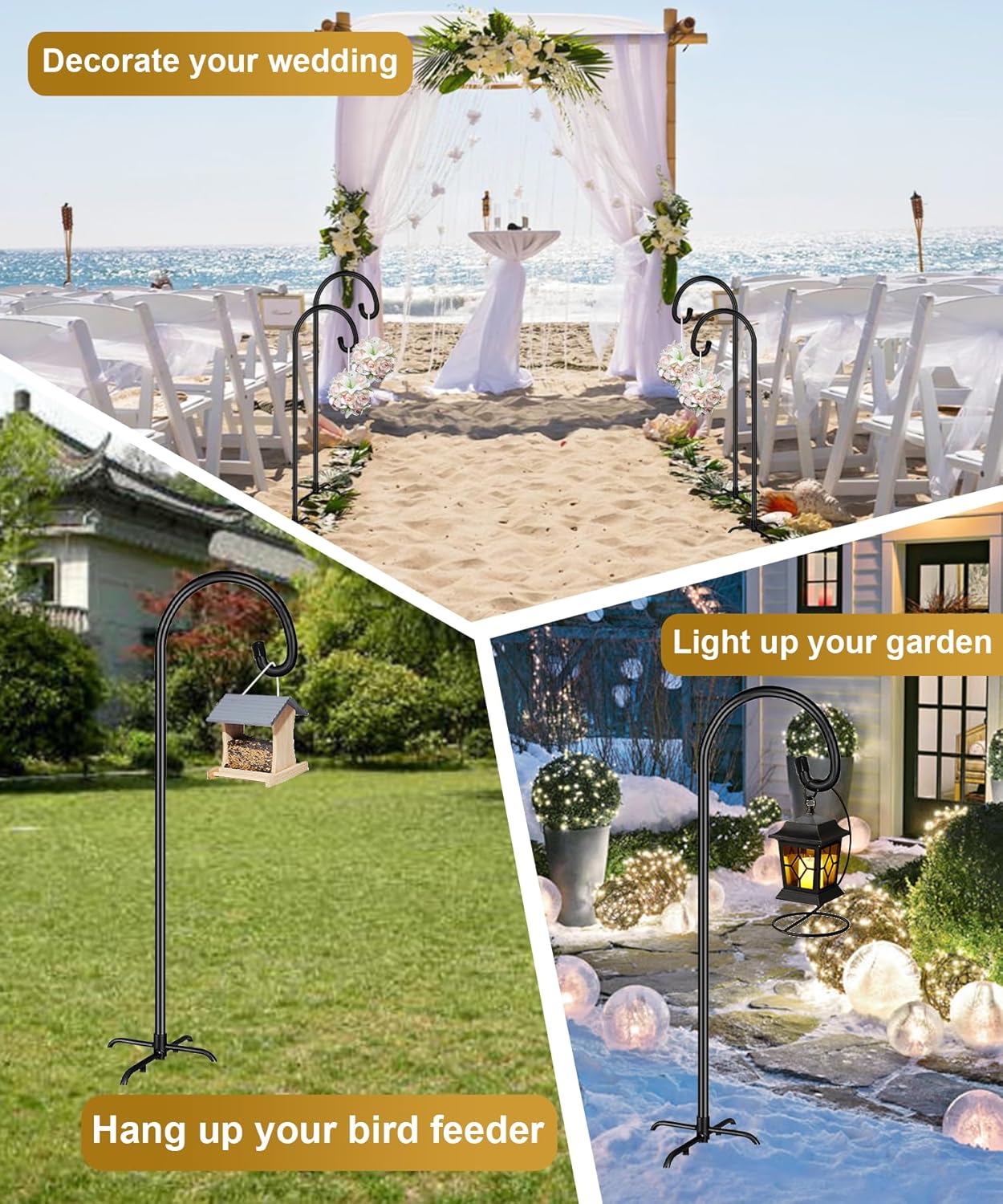 - Wide Range of Uses : The adjustable bird feeder hook is perfect for any occasion, it can not only decorate your garden, lawn or garden, but also for a perfect and memorable wedding. At the same time, as long as the load is not exceeded (108 inch Maximum weight: 11 LBS), you can hang anything you want.Such as outdoor garden decoration, bird feeders, plant pots, solar lights, flower pots, candle holders, garden lights, glass bottles, plant stands and other garden decorations and more.