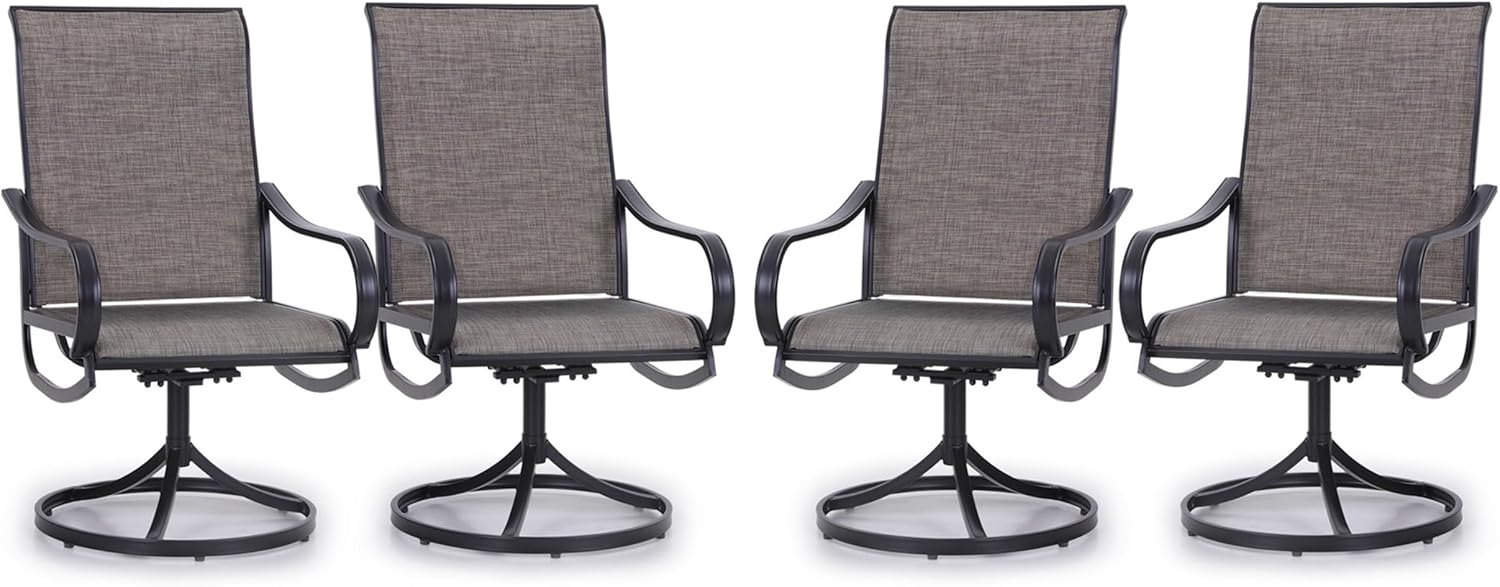 PHI VILLA Patio Swivel Dining Chairs Set of 4 Outdoor Metal Chair with Textilene Mesh Fabric, Patio Gentle Rocker Chair, Black Frame for Deck Garden