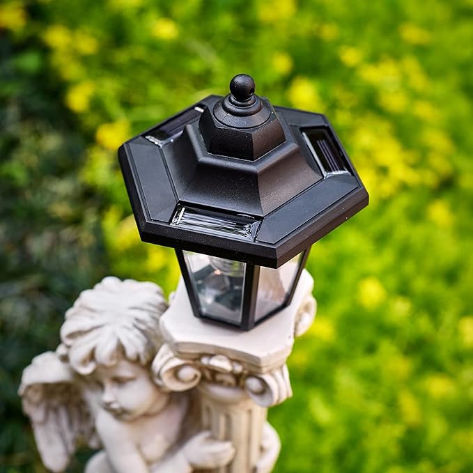 - Bring your garden, patio or balcony a touch of tranquility with this stunning angel statue. This lovely angel statue with solar light has been hand sculptured and hand painted giving it such a unique design. It will give your garden an instant effect without any hassle.