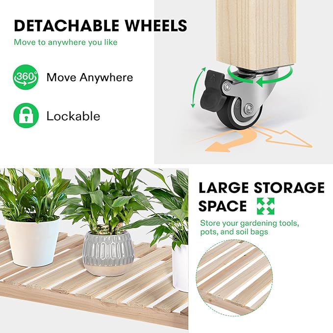 - Mobile Wheels: The 4 bottom wheels (two of which come with brakes) make it easier to move the garden bed from place to place