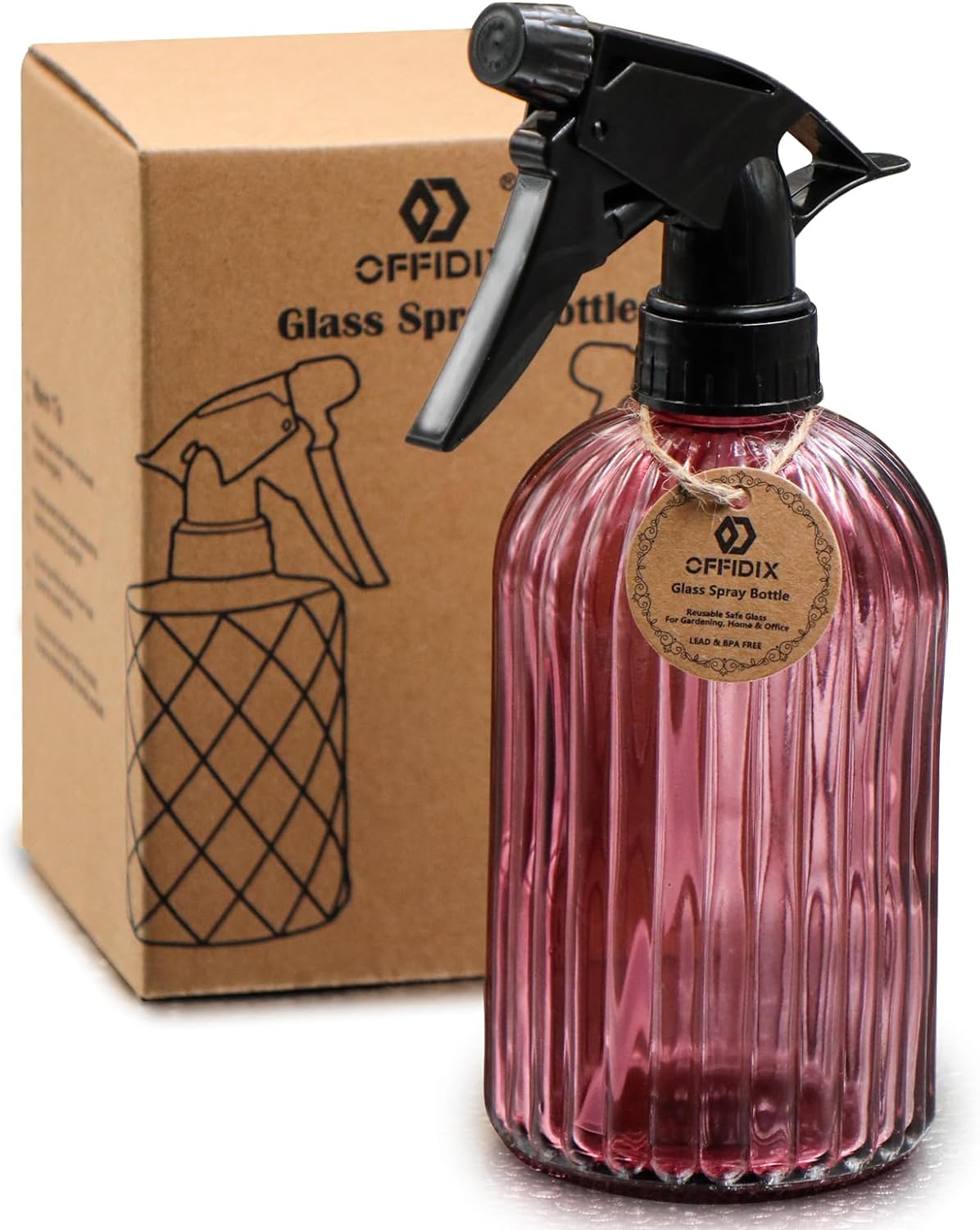 OFFIDIX Glass Spray Bottle, Pressure Watering Can, Indoor Plant Mister, Adjustable Nozzle, 0.4L/13.5oz Handheld Spray Bottle for Garden Plants Cleaning Solutions (Amaranth)