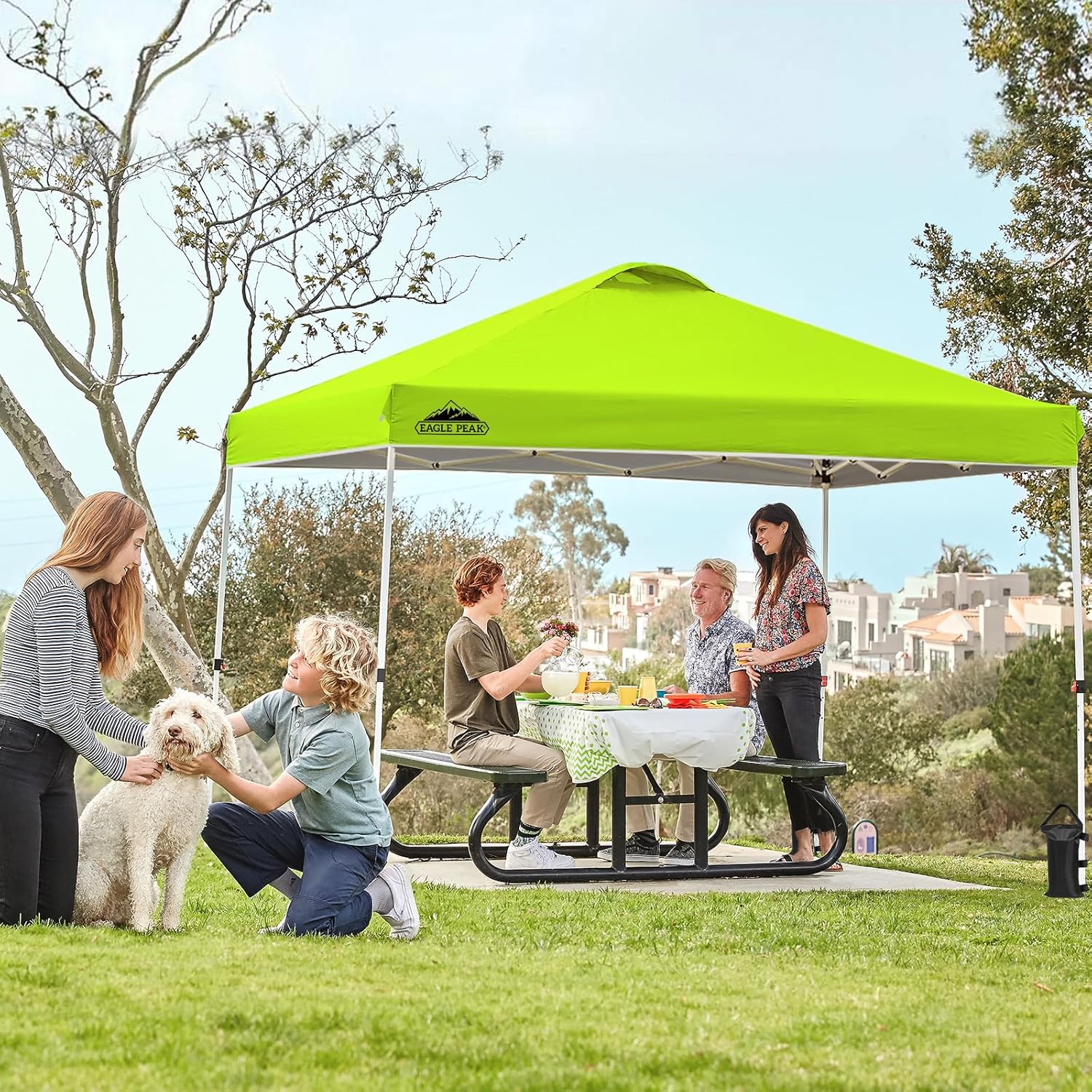 EAGLE PEAK Pop Up Canopy Tent with Wheeled Carry Bag, 8 Stakes, 4 Ropes, 4 Weight Bags, Easy Set Up Tent Canopy, 10x10 ft, 100sqft of Shade, Neon Green