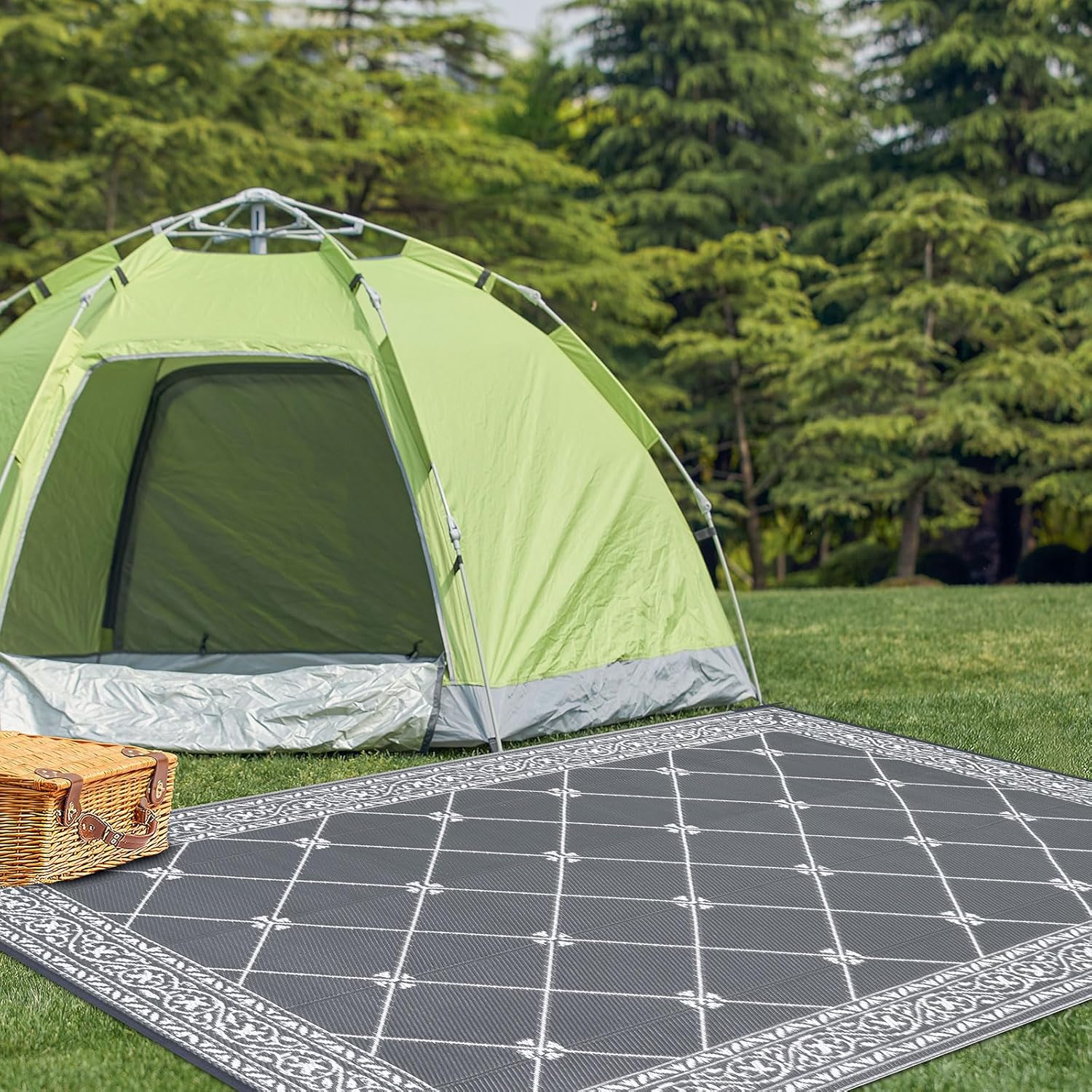 - Soft Polypropylene Material: The patio rug lightweight, soft and lays nicely, which is great for kids to be able to sit and play. The breathable material will not hurt grass or scratch your deck. The edging design reduces the abrasion of the rv rug and is more durable