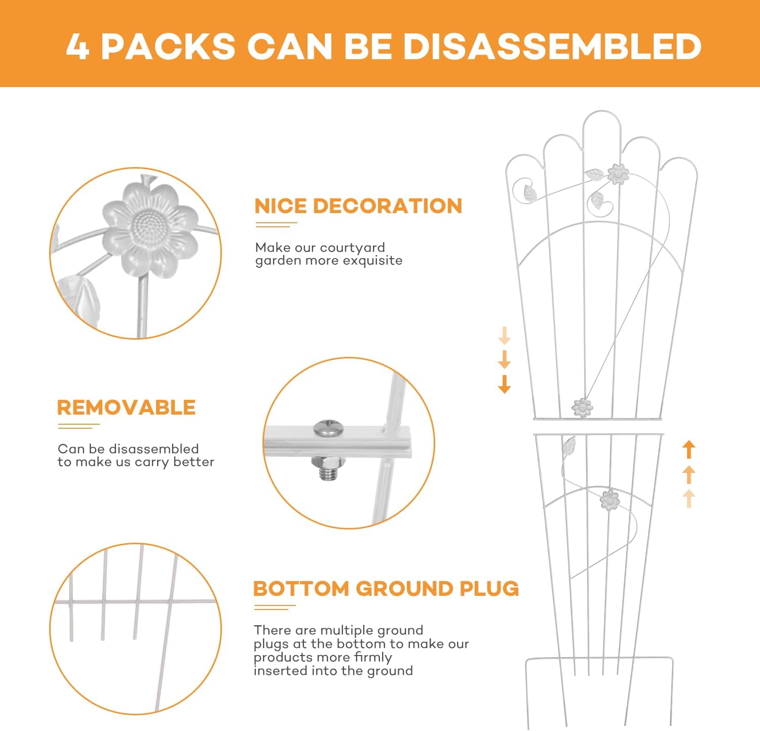 - ATTRACTIVE AND UNIQUE DESIGN OF PLANT TRELLIS: The garden trellis is unique from other climbing trellises for plants. The design of plant stakes for outdoor plants is more innovative and incorporates the majority of architectural types for better garden integration. The finest garden for you to climb plants will be the one with a trellis for climbing plants.