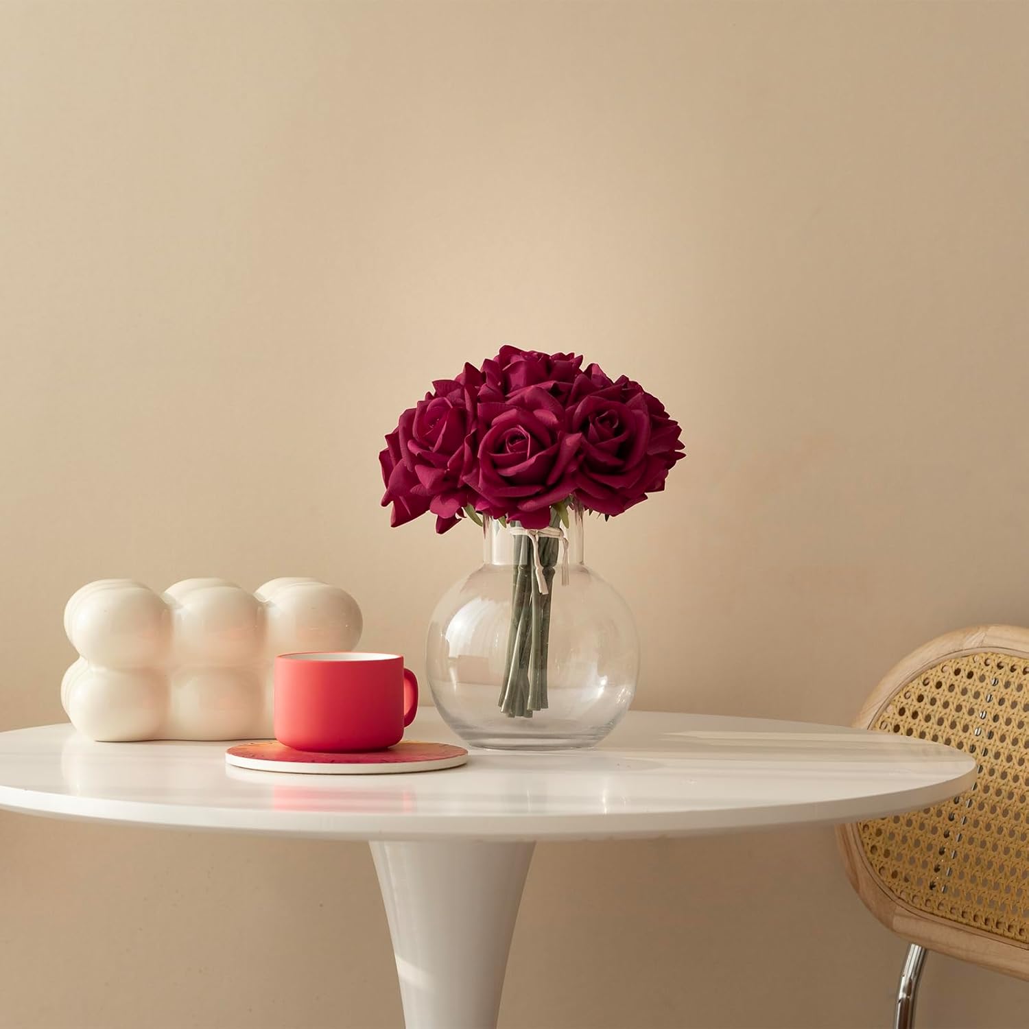 Artificial Roses Single Stem 10pcs Fake Silk Flower Arrangement Bouquet Real Touch for Home Party Wedding Decoration(Rose red)