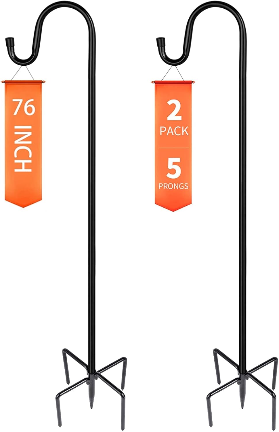 - 【Upgraded in Stability & 5 Base Prongs】Compared to other similar hooks in the market, our heavy-duty shepherds hooks have upgraded with 4 extra long and double-forked base prongs to be total 5 prongs which makes it the strongest garden hook in the market and maintain a fixed, upright posture while remaining firmly planted in the ground without easily falling down.