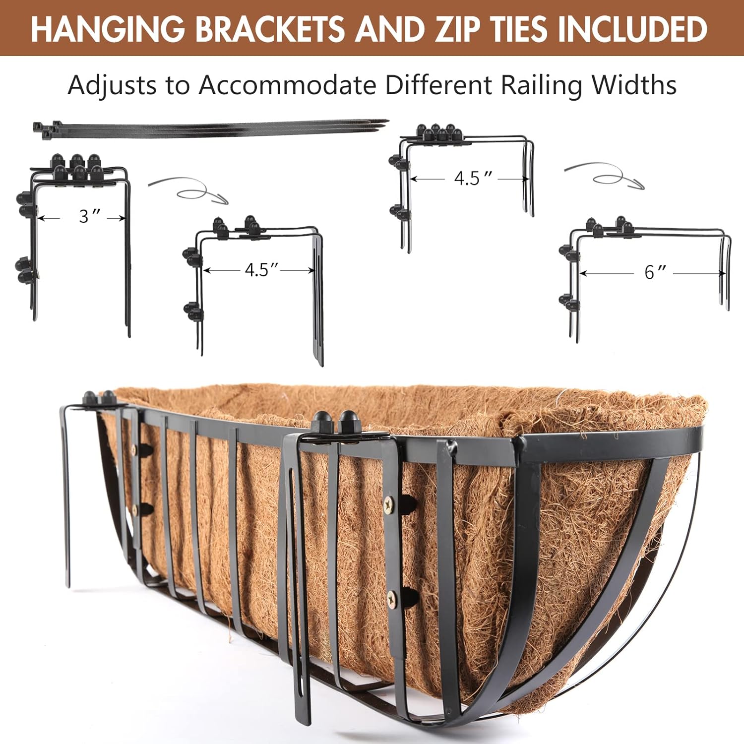 4 Pcs 30“ Window Box Deck Railing Planter with Coco Liner for Outdoor Balcony Porch Fence Patio Rail